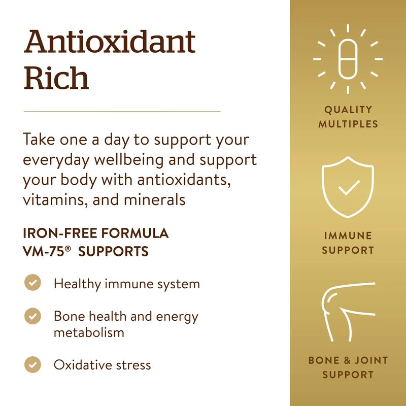 - MOST POPULAR ONE-A-DAY: Iron-Free Formula VM-75 is Solgar’s most popular one-a-day multivitamin with 30 nutrients specifically formulated to provide nutritional support for busy lifestyles