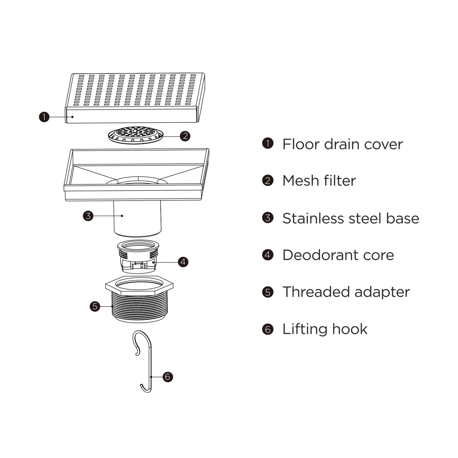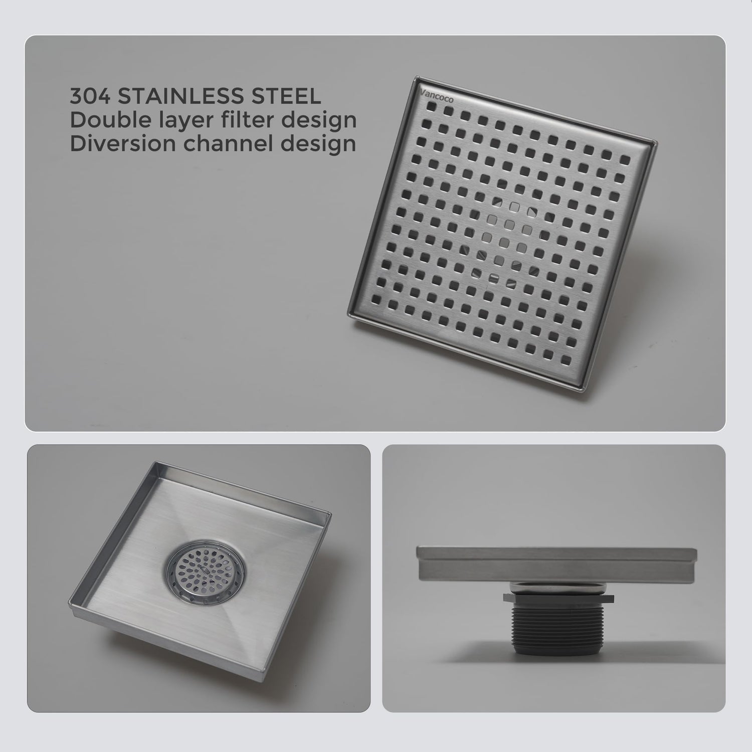 Square Floor Drain - Vancoco Bathroom Floor Drainer Anti-odor Anti-clogging Shower Floor Drain with Removable Straine(150 * 150mm)