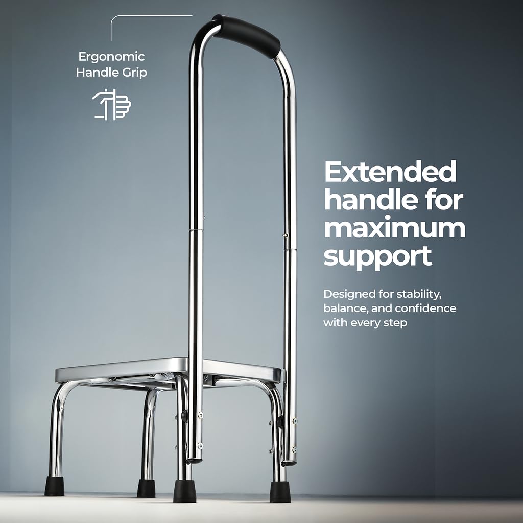 Step Stool with Handle for Adults Step stools with Handle for Elderly for Bed Chrome-Plated Steel Frame 330Lbs Capacity Use at Home Bathroom Kitchen