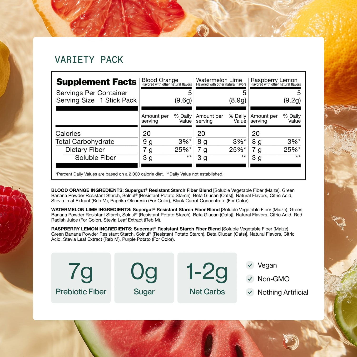 Supergut Gut Healthy Flavored GLP-1 Booster, Variety Pack - High Fiber GLP-1 Supplement Powder for Women & Men - Sugar-Free Drink Mix for Gut Health & Digestive Support (15 Servings)