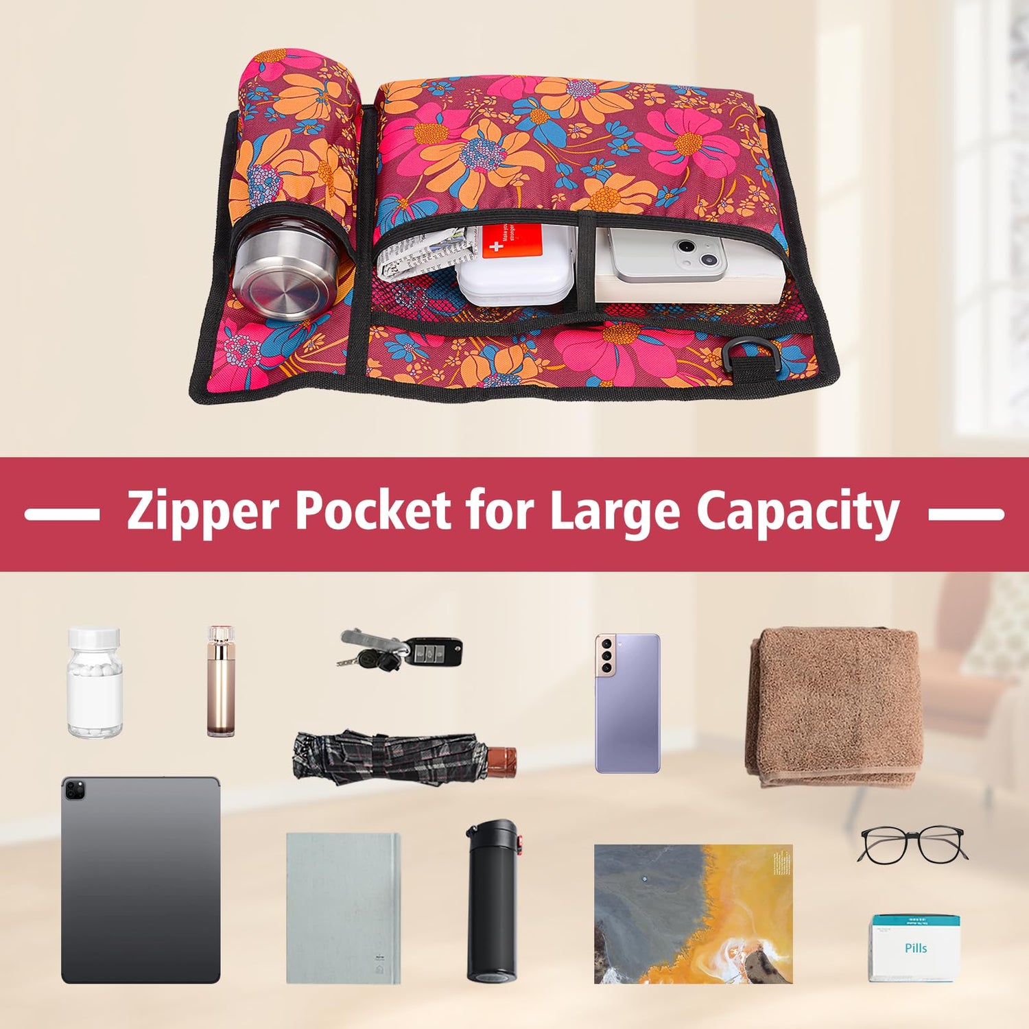 - Multi-function Pockets: total 5 pockets allow you to store most daily necessaries; 1 large compartment and 2 mesh pockets together with 1 drink holder pocket and D-ring in front, enable you to get quick access to glasses, drink, snacks, etc; 1 large zipper back pocket safely keeps your wallet, books and medical supplies