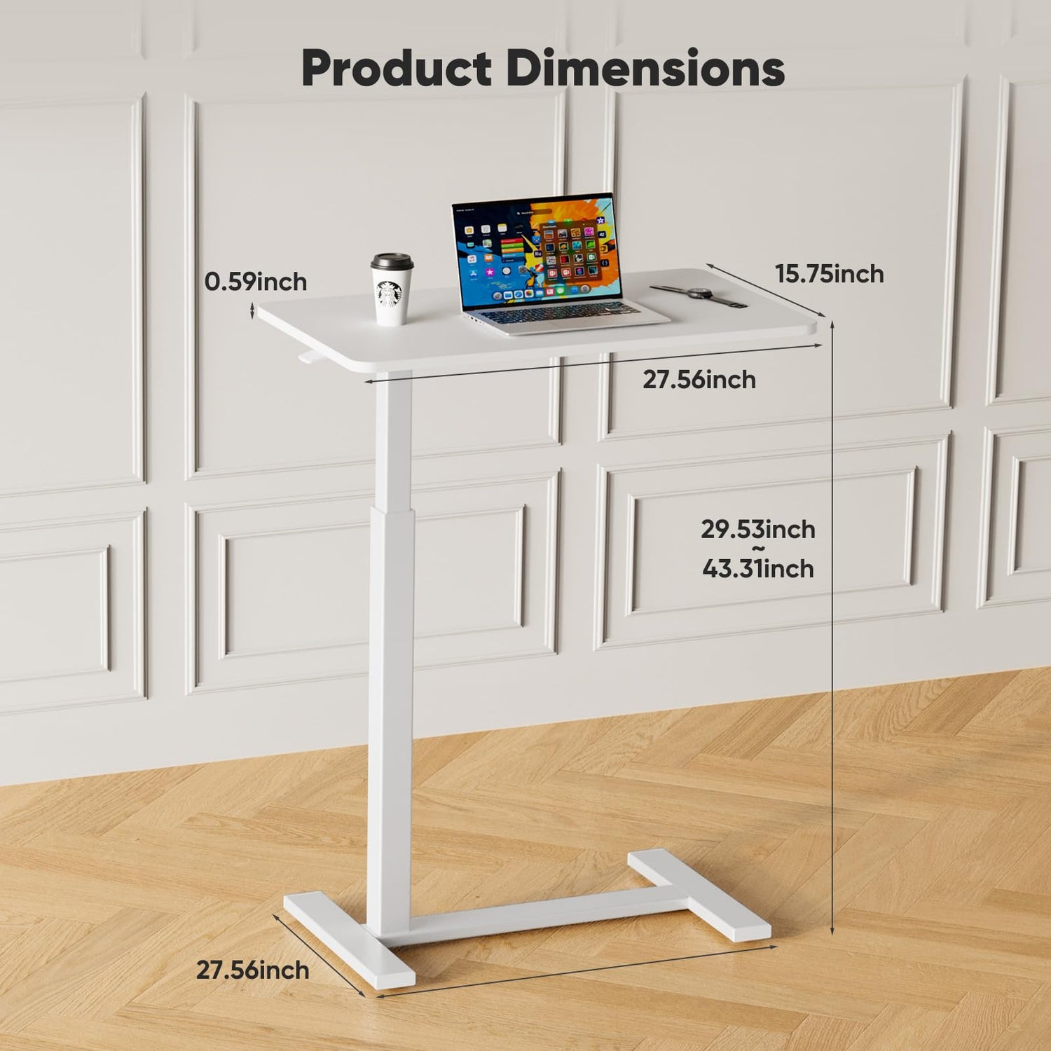 Sweetcrispy Overbed Bedside Table with Wheels, Adjustable Hospital & Home Use Bed Table, Rolling Laptop Table, Mobile Standing Desk, White