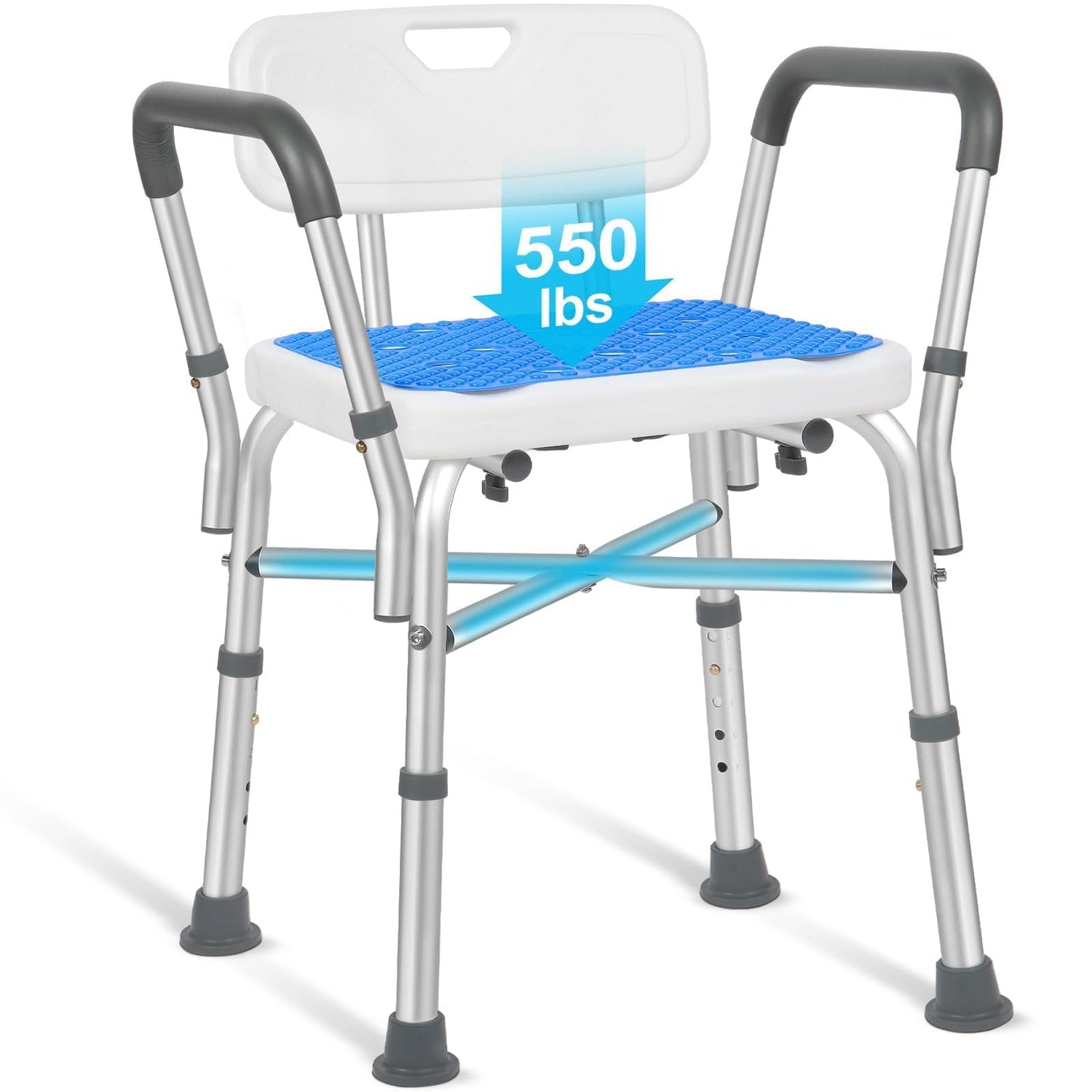 - 【Stay safe & Supported】*FSA/HSA Eligible* Featured with Non-slip feet, Extra cross bars, and 550lb weight capacity, this shower chair provides the stability and security you need so you can relax and refresh without worries. **The armrests are intended to be tightly locked to provide a stable shower experience**