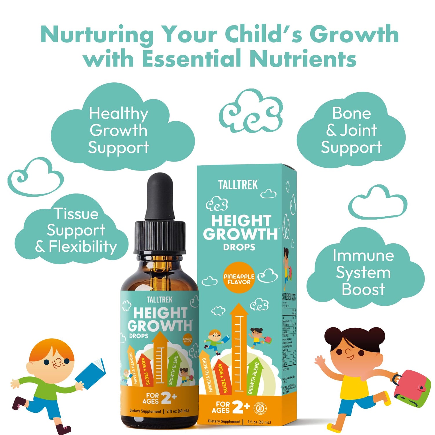 - Supports Natural Growth: TallTrek Height Growth Drops provide key nutrients like Calcium, Vitamin D3, and Vitamin K2, which are important during key growth phases. A well-rounded intake of these nutrients helps support overall development by contributing to proper nutrient absorption and utilization, as well as promoting bone strength. Regular use, alongside nutritious diet and active lifestyle, helps your child or teen get essential nourishment to support natural growth and maximize height.