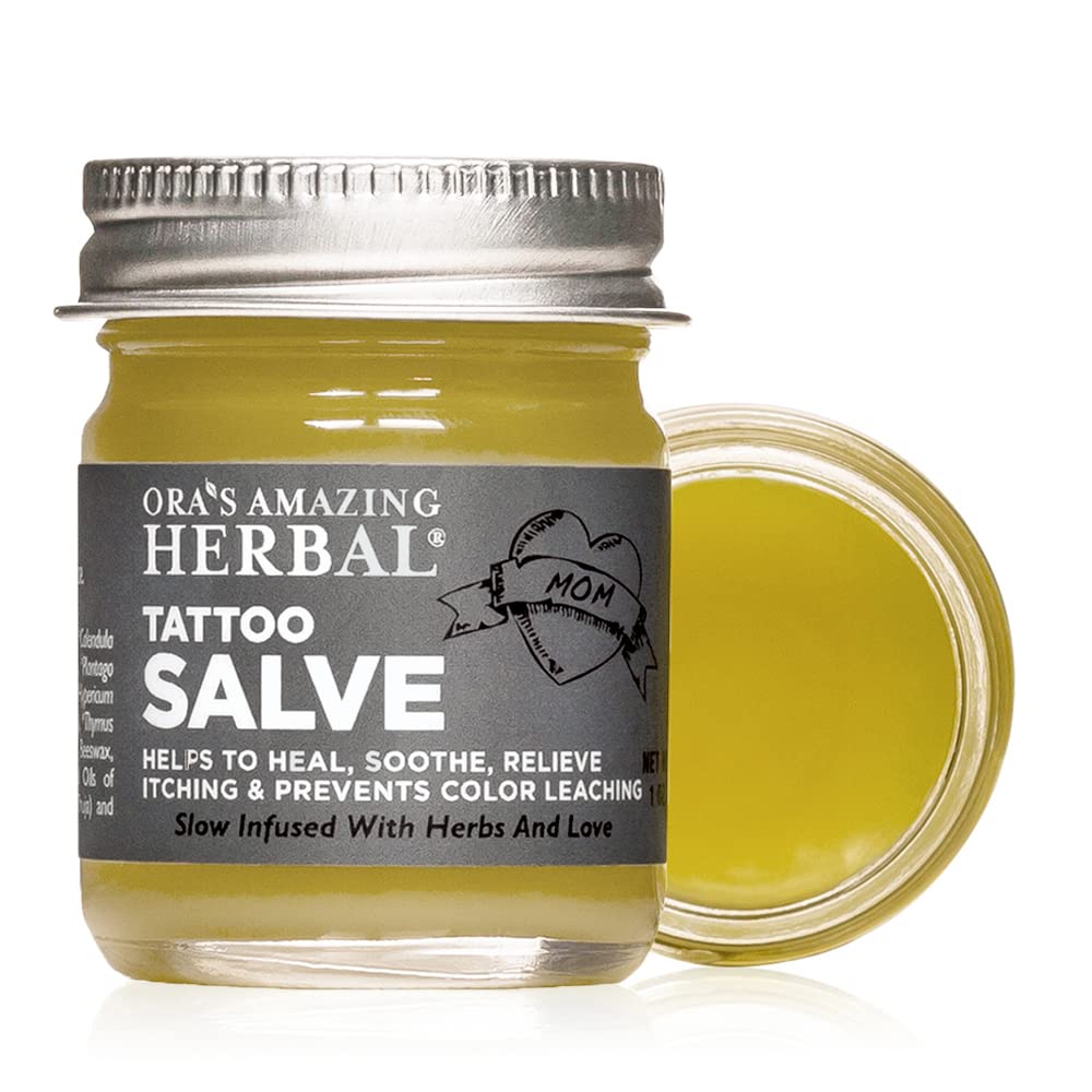 Tattoo Salve, Tattoo Aftercare Balm, Paraben Free Healing OIntment For New Tattoos, Brightening Moisturizer For Old Ink, Itchy Tattoo Relief Cream, Plastic Free, Ora’s Amazing Herbal, 1 oz Travel Size