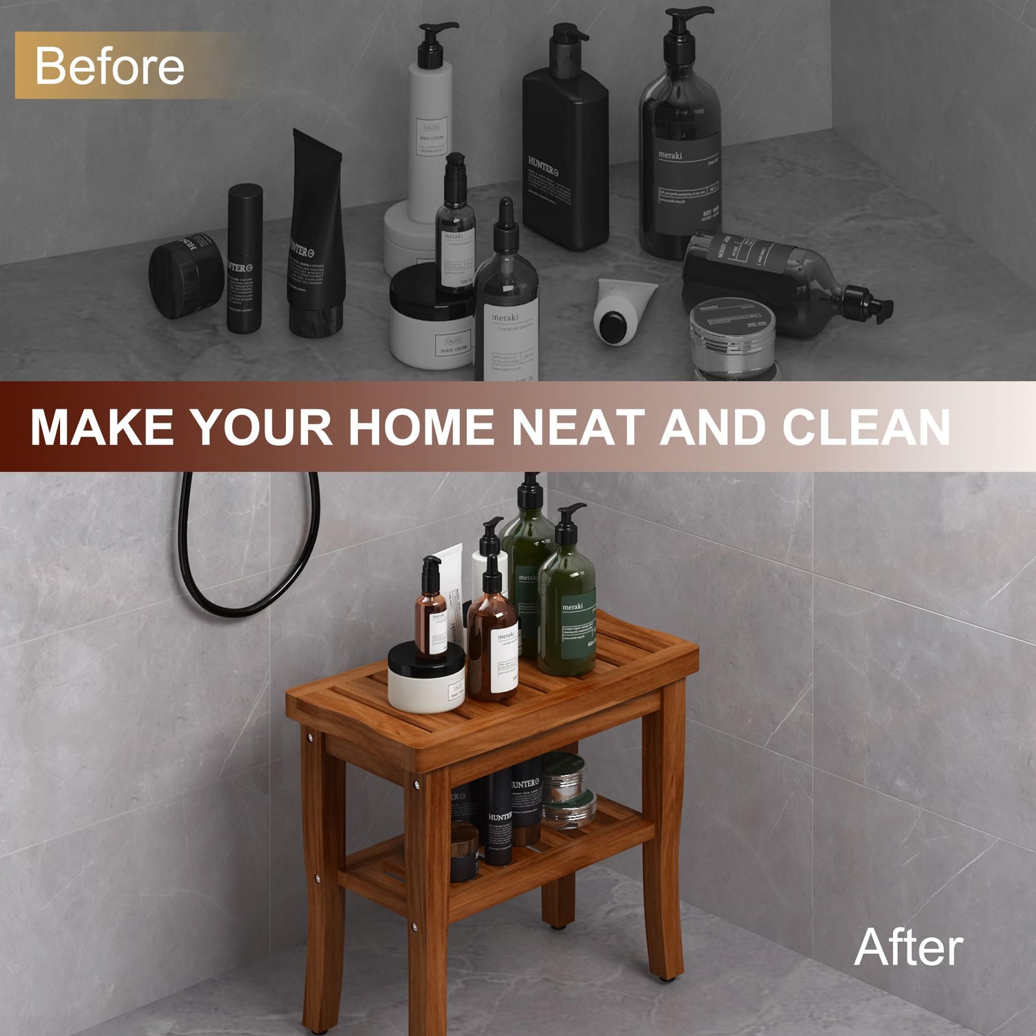 - Grade A Teak For Generations - Elevate your space with a teak shower bench built to last for generations. Impeccably crafted from extra thick Grade A quality teak, this shower stool combines traditional craftsmanship with modern design, providing a timeless and elegant addition to your bathroom, patio, or poolside.
