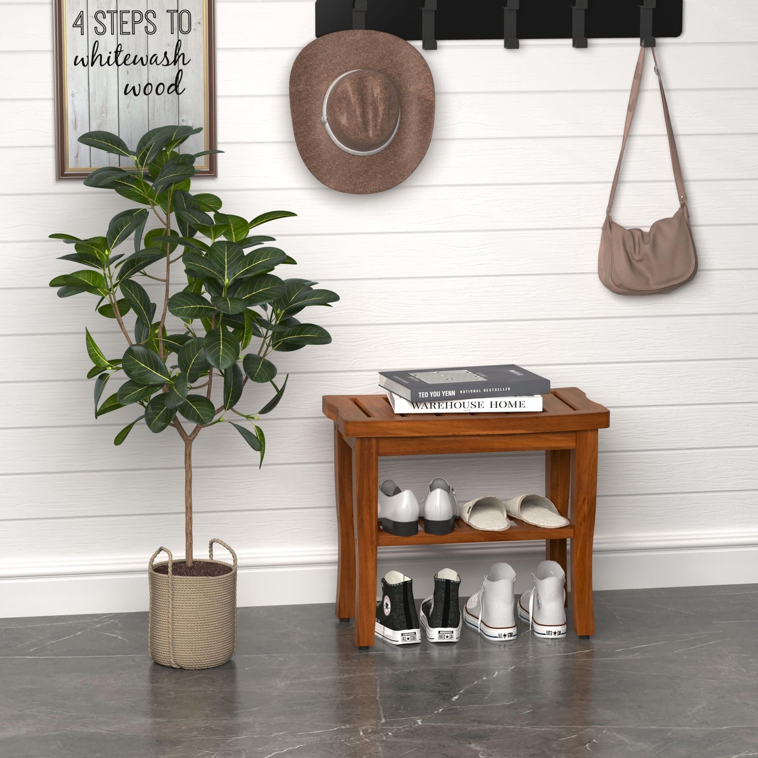- Stylish Accent For Any Space - Add an elegant touch to any space with the rich brown finish of this 100% solid teak wood shower bench. Whether as a functional accent on your patio, a stylish poolside addition, or a practical bathroom seat, this bench effortlessly blends beauty and utility to elevate any environment.