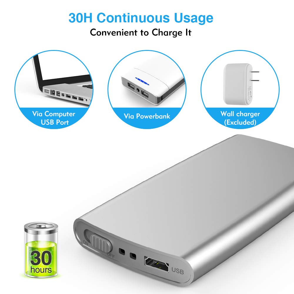 - Rechargeable Battery: Up to 30 Hours of Continuous Use. It can be connected to wall charger, power bank or laptop USB port to charge. Don't worries about treatment interruption for dead AA batteries any more.