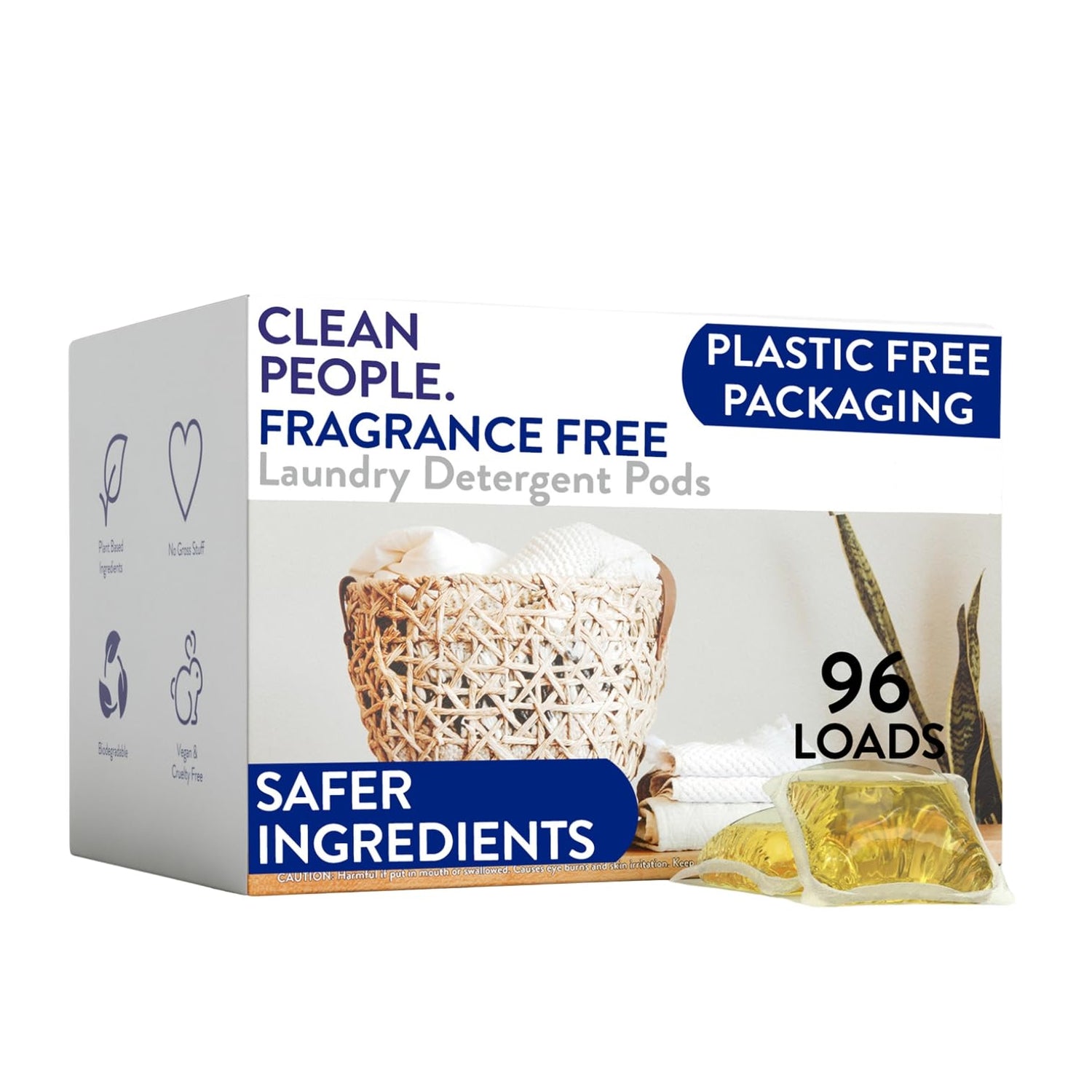 The Clean People Fragrance Free Laundry Detergent Pods - Hypoallergenic Laundry Pods - Ultra Concentrated, Recyclable Packaging, Stain Fighting - Fragrance Free, 96 Pack