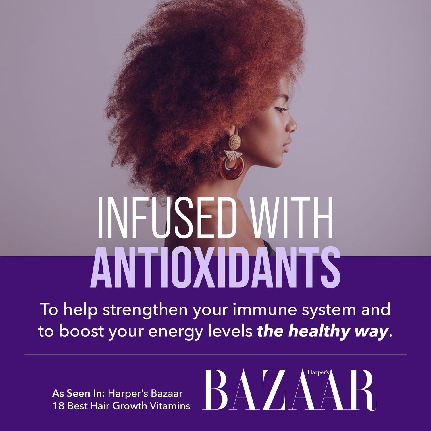 - Protection Against Premature Graying: These vitamins are enriched with Folic Acid, a vitamin involved in all 3 hair follicle cycles, helping a hair strand’s quality and longevity. It promotes growth by renewing the cells that grow hair.