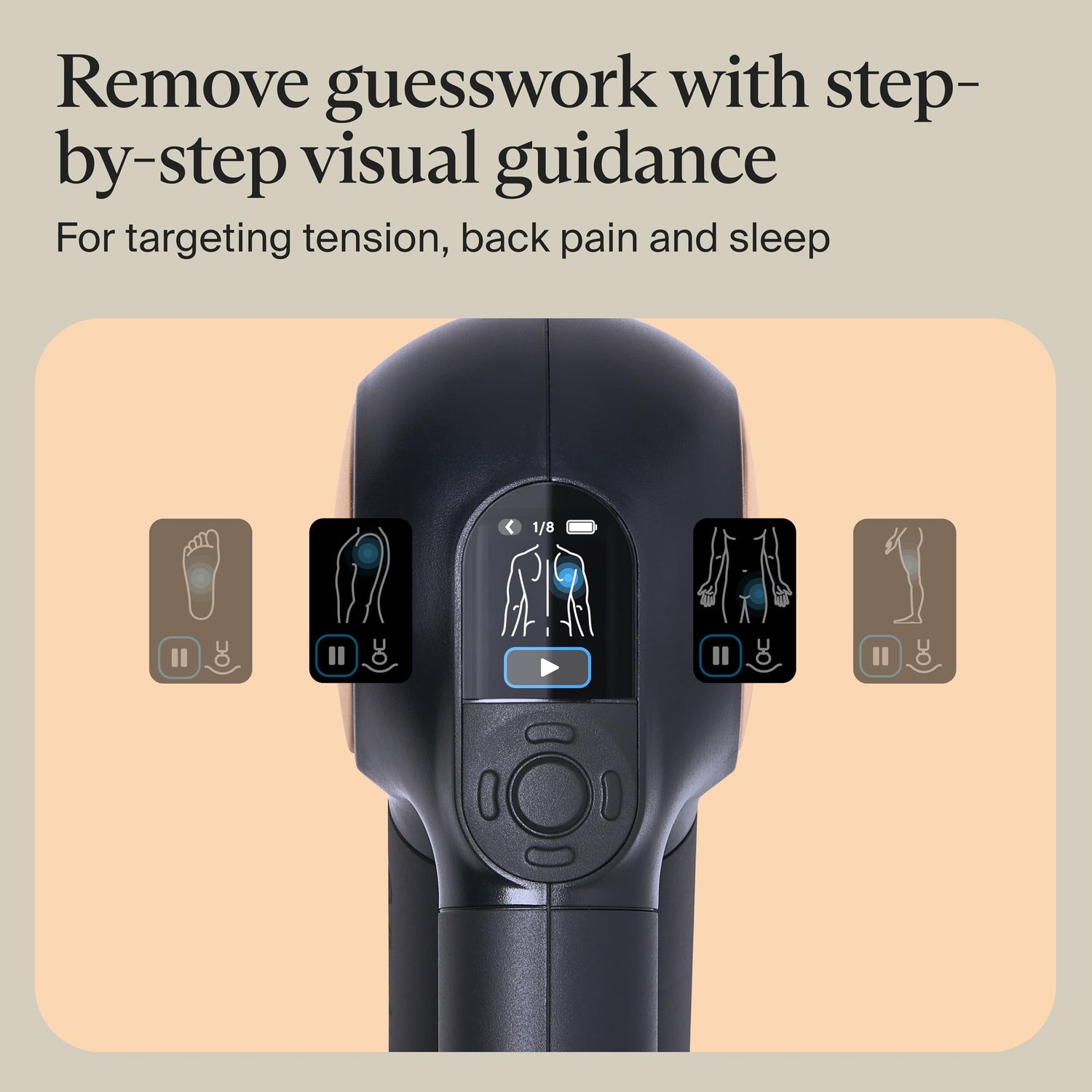 - Customize your treatments in the Therabody app: Connect to the Therabody app via Bluetooth to follow step-by-step guided routines, control device speed and access personalized wellness and recovery recommendations —great for step-by-step guidance and easy visualization of routines specific to things like arthritis, sciatica and plantar fasciitis relief.