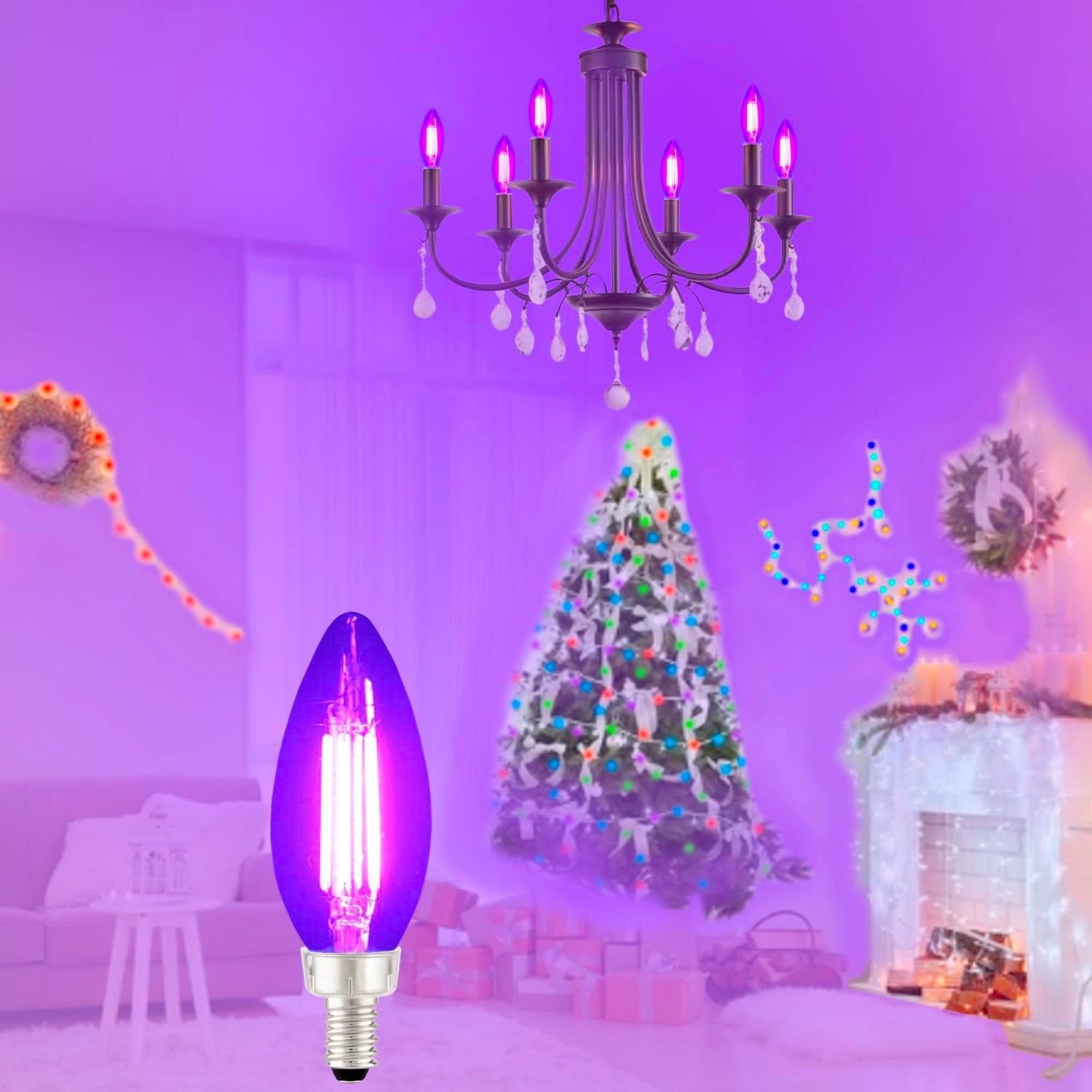 - 360° Illumination: These Filament E12 B11 C35 black light bulbs feature 4 LED filament strips with 88 chips, providing a 360-degree beam angle to light up your entire space with a vibrant neon glow.
