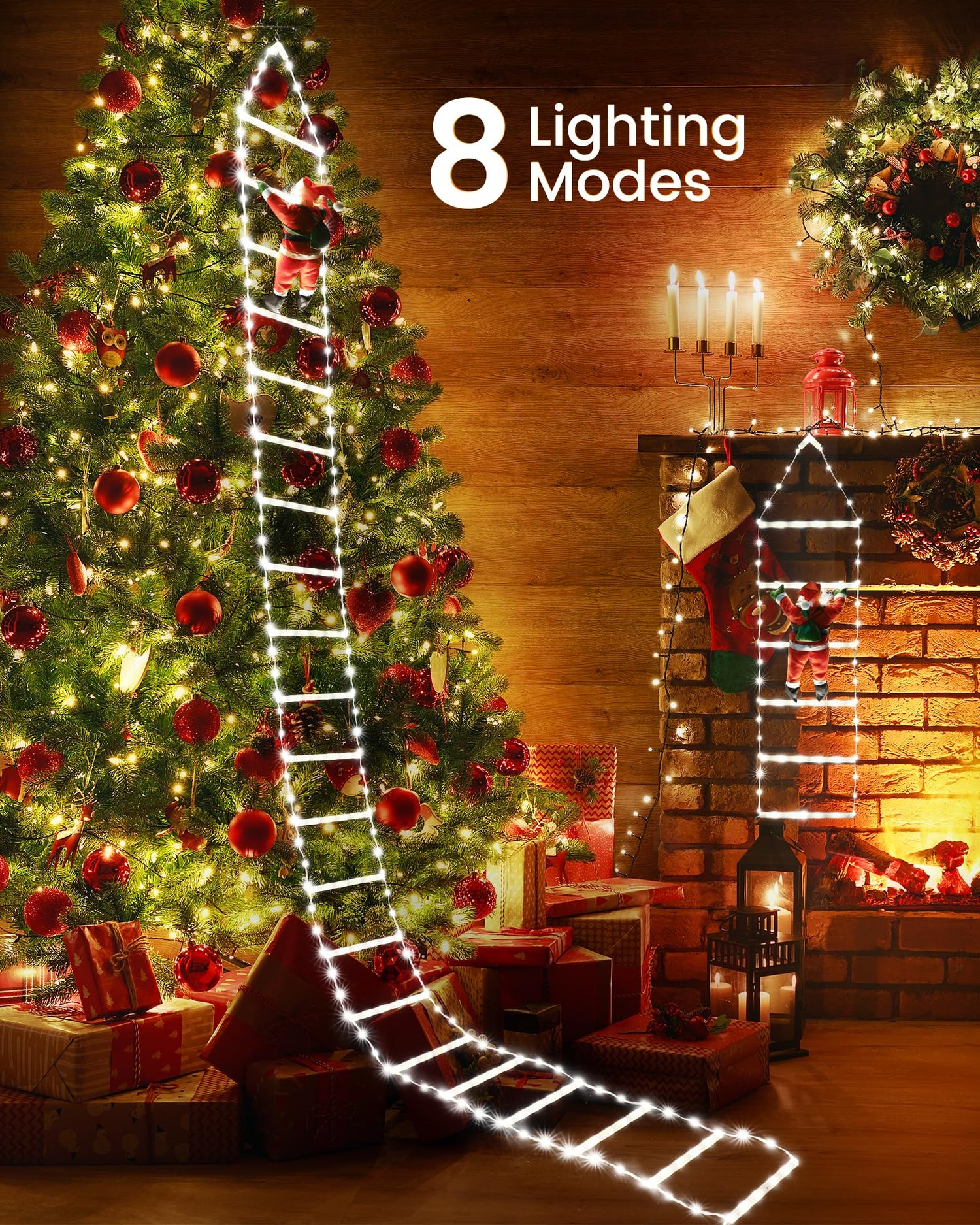 - 2025 Newest Christmas Lights - Special-designed Christmas lights composed of a 10ft lighted rope ladder and a detachable Santa, will add a lot of festive atmosphere for your Christmas. This Christmas decorative light is perfect for home, garden, yard, window, porch, Christmas tree DIY decor