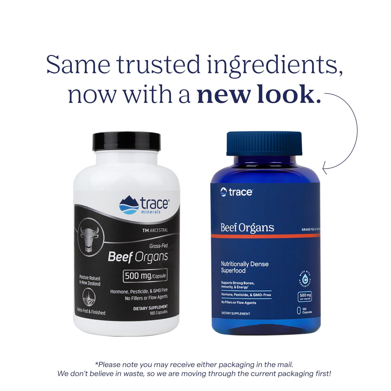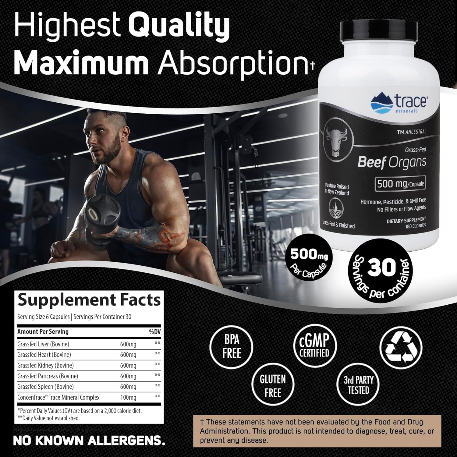 Trace Minerals Beef Organ, 600mg - Bone & Energy Health Support Supplement - Nutritional Supplement Aids Healthy Organs - Healthy Hearth & Immunity Support with Minerals - 180 Capsules (30 Servings)