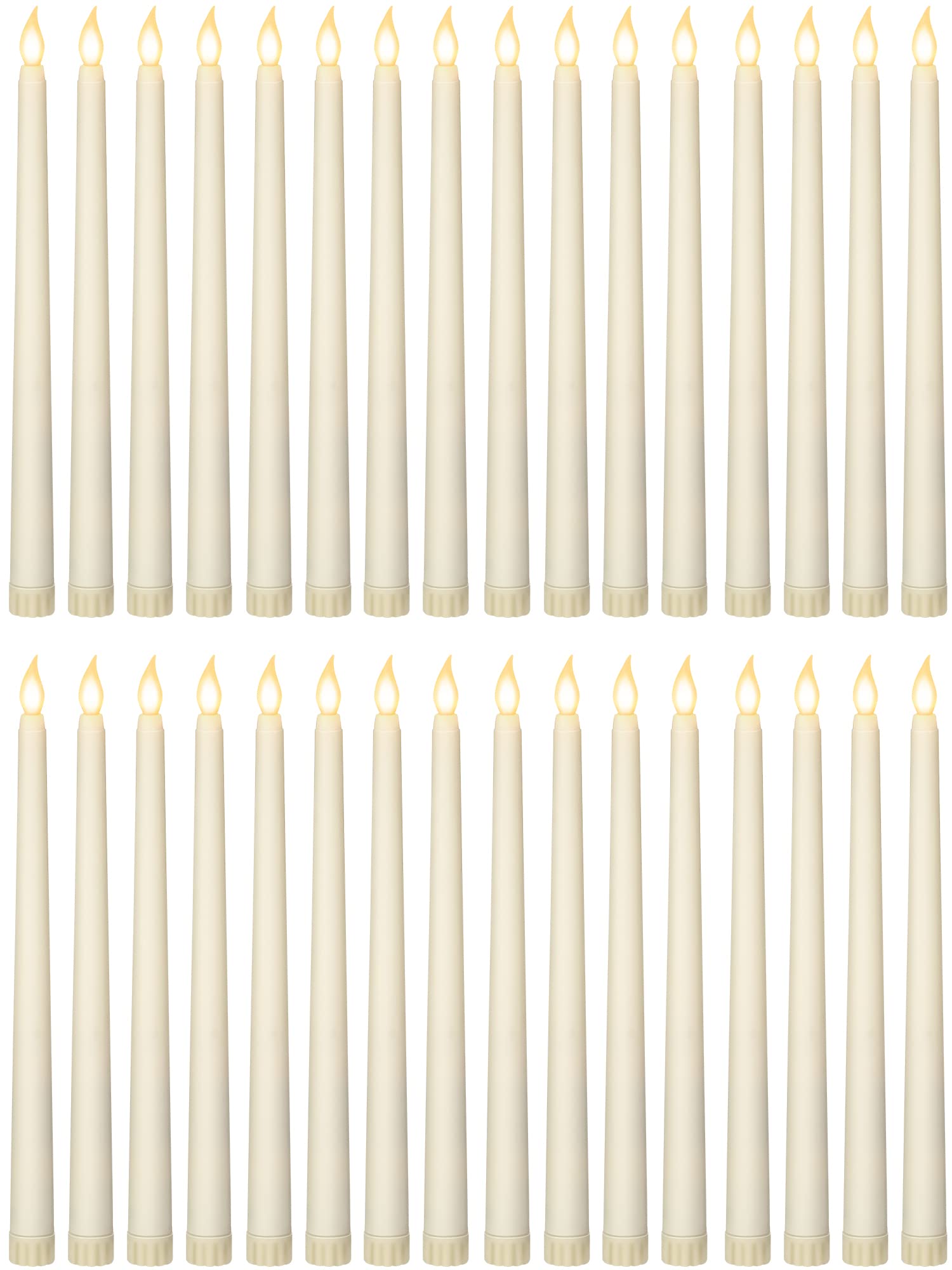 Treela 24 Pcs Flameless Taper Candles Battery Operated Bulk Fake 11 Inch Candles Light LED Candlesticks Flickering Tapered for Wedding Halloween Christmas Decoration(Ivory,Basic)