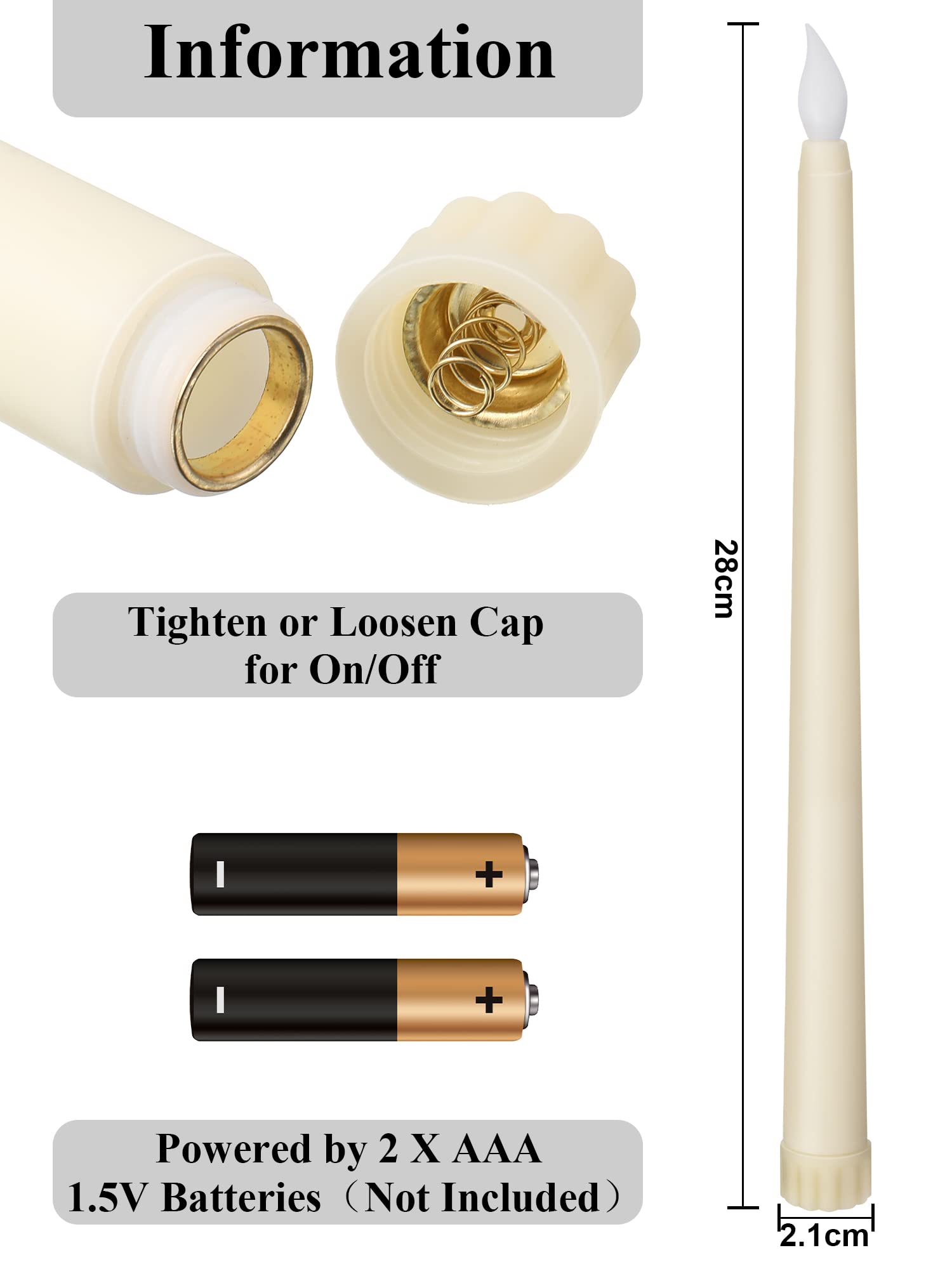 - Battery Powered Candles: each flameless candle measures about 28 cm/ 11 inches in height, 2.1 cm/ 0.8 inches in diameter, suitable size thus can be noticed easily and suitable for most standard and glass taper candlesticks, each LED candle need 2 AAA batteries (not included in package), you can replace the battery conveniently
