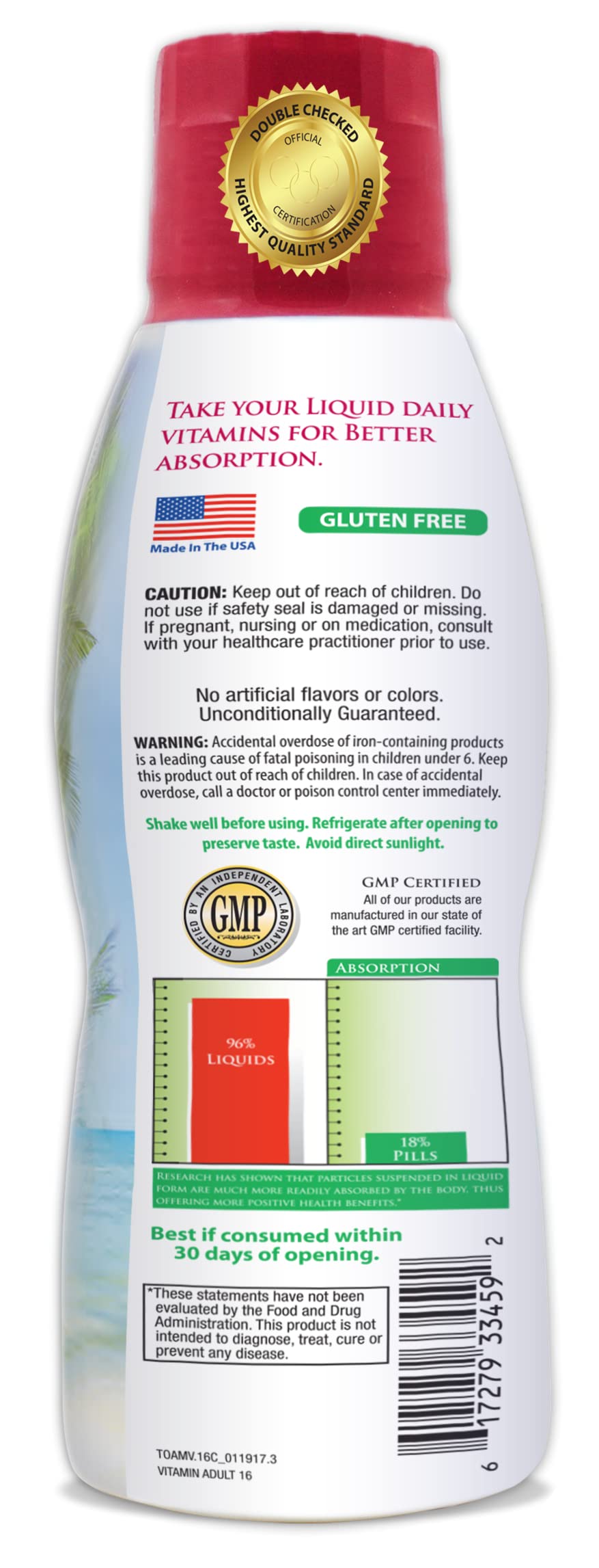 Tropical Oasis Adult Liquid Multivitamin -Liquid Multi-Vitamin and Mineral Supplement with 125 Total Nutrients Including; 85 Vitamins & Minerals, 23 Amino Acids, and 18 Herbs - 16 fl oz, 32 serv