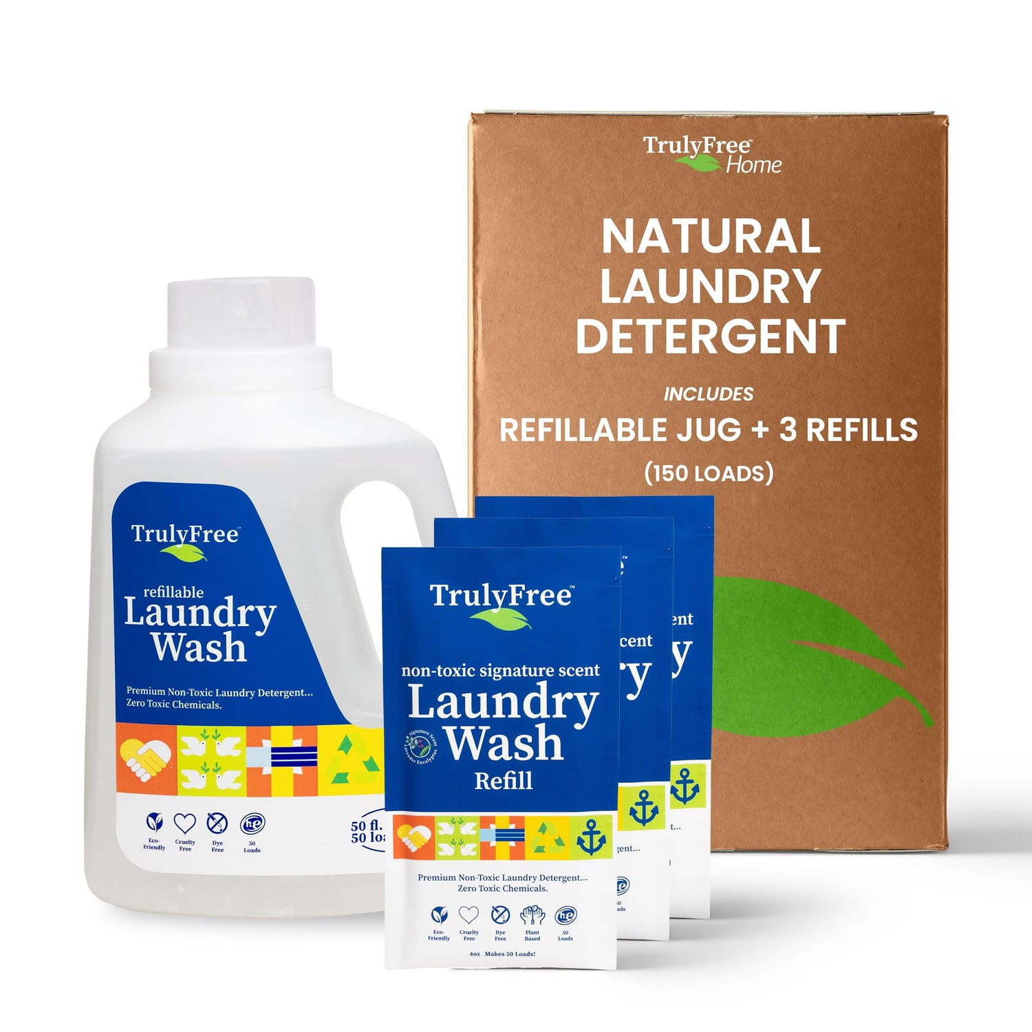 Truly Free Laundry Detergent for Sensitive Skin | Gentle & Safe for Baby Clothes | Plant-Based | 3 Pack Refill Powder| Easy to Dissolve to Create a Liquid| Signature Wash Scented (150 Loads) is backordered and will ship as soon as it is back in stock.