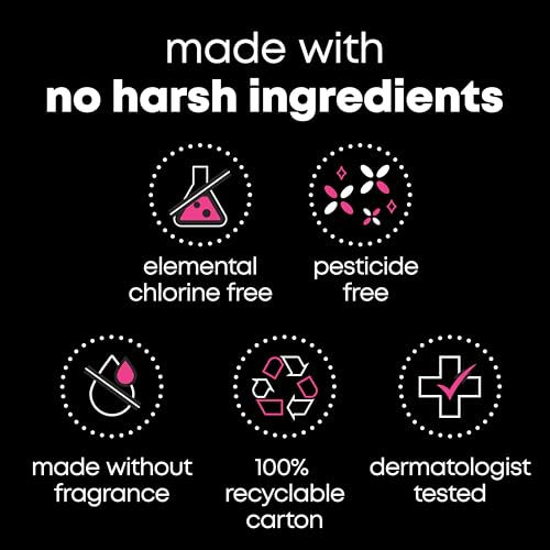 - No Harsh Ingredients: These pads for women are made without fragrance, lotions, pesticides, parabens, elemental chlorine and natural rubber latex