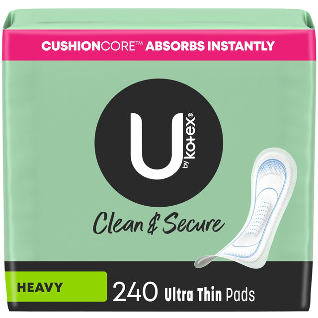 - U by Kotex Clean & Secure Ultra Thin Pads, Heavy Absorbency, 240 Count (6 packs of 40, 240 feminine pads total)