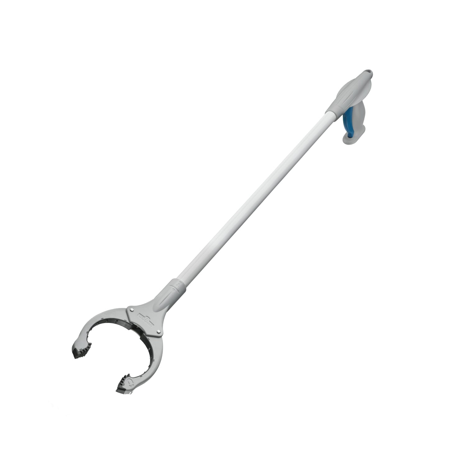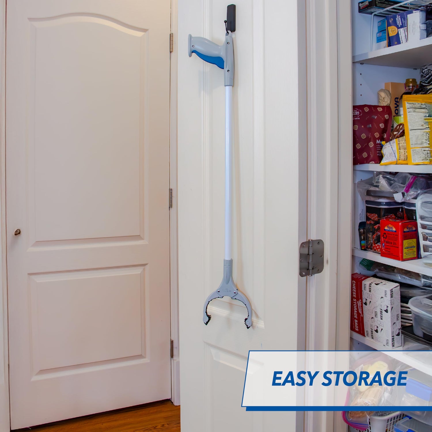 Details: This Unger 32” Grabber Plus helps extend your reach to pick up items without bending or climbing a stool or ladder. Perfect for yard clean up, helping the elderly, benefits the mobility impaired, and allows extended reach. Safely complete everyday tasks like picking up fallen objects, children’s toys, baby bottles, and pet toys. Reach for an object in a high cabinet or grab an item from a tight or confined space, like between a wash and dryer. Comes with a built-in magnet for picking up small metal objects. Grips large, small, and odd shaped items. This grabbing tool has a 360-degree rotating head and ergonomic, trigger grip for a more comfortable use. Easily store away when not in use with the hang hole located on the grip.