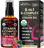 - 8-in1 B-Complex Spray — With 20,000 mcg per serving! A comprehensive blend of essential Thiamine B1, Riboflavin B2, Niacinamide B3, D-Calcium B5, Pyridoxine B6, Biotin B7, Folic Acid B9 & Methylcobalamin B12 vitamins provides a convenient solution for energy, brain, heart, metabolism, vitality & immune health support. Perfect energy mix with natural berry flavor in spray.