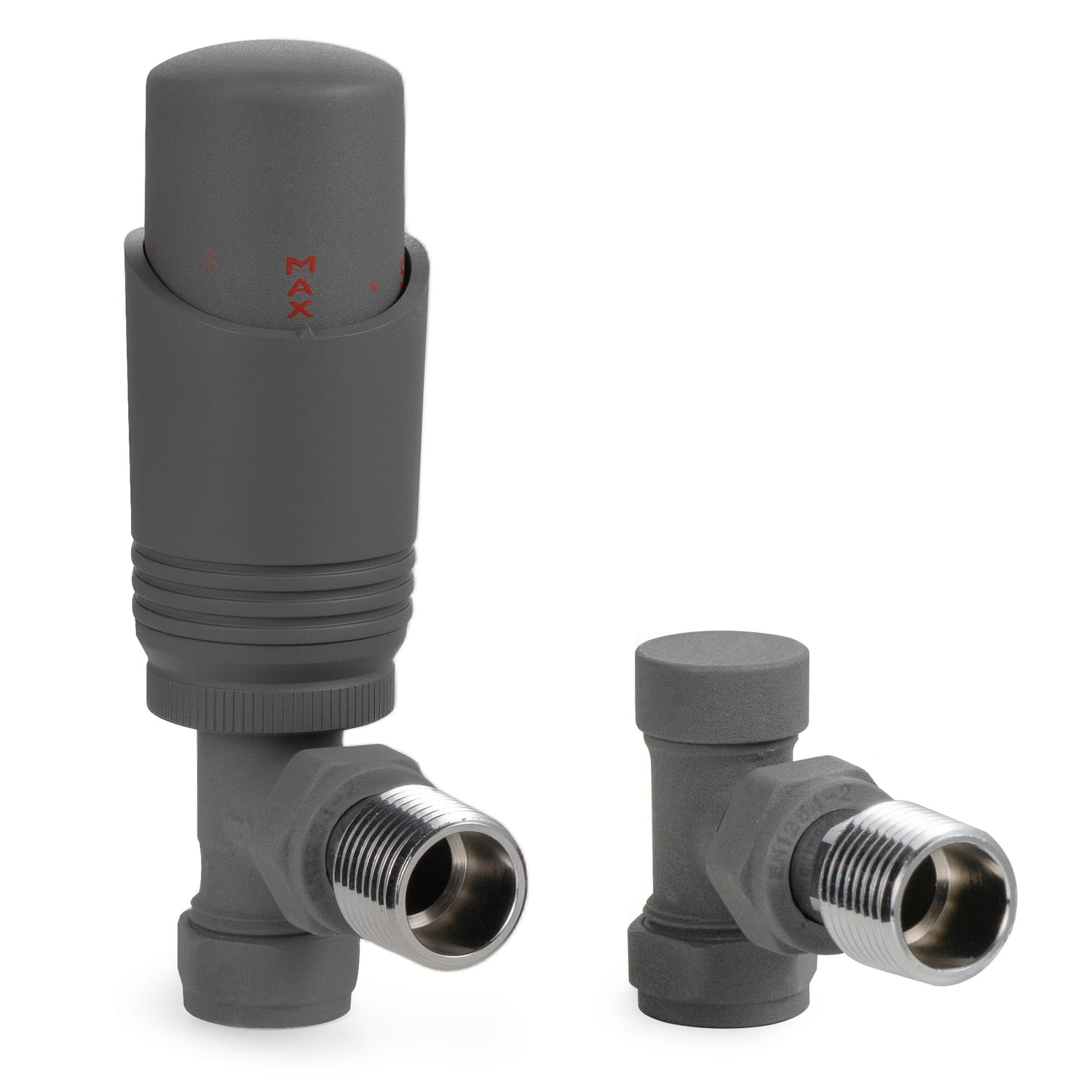 VANCOCO Anthracite Grey Thermostatic Radiator Valves 15mm (TRV) with Lockshield, 1/2"×15mm Angled Radiator Thermostat Valve, H62 Brass, Energy Saving Modern TRV for Central Heating Syetem