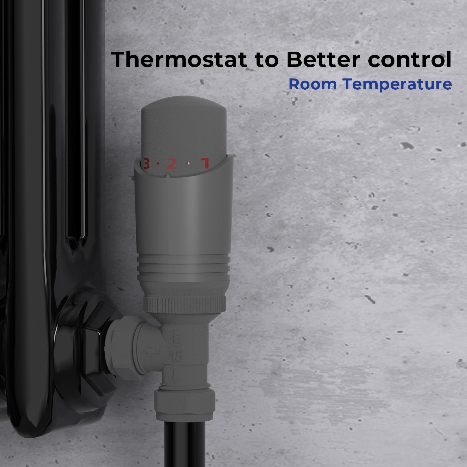 - 【WIDE APPLICATION】The radiator thermostatic valve with 1/2" threaded connection can be used for towel racks, column radiators, panel central heating radiators, vertical flat tube radiators. Pay attention to size