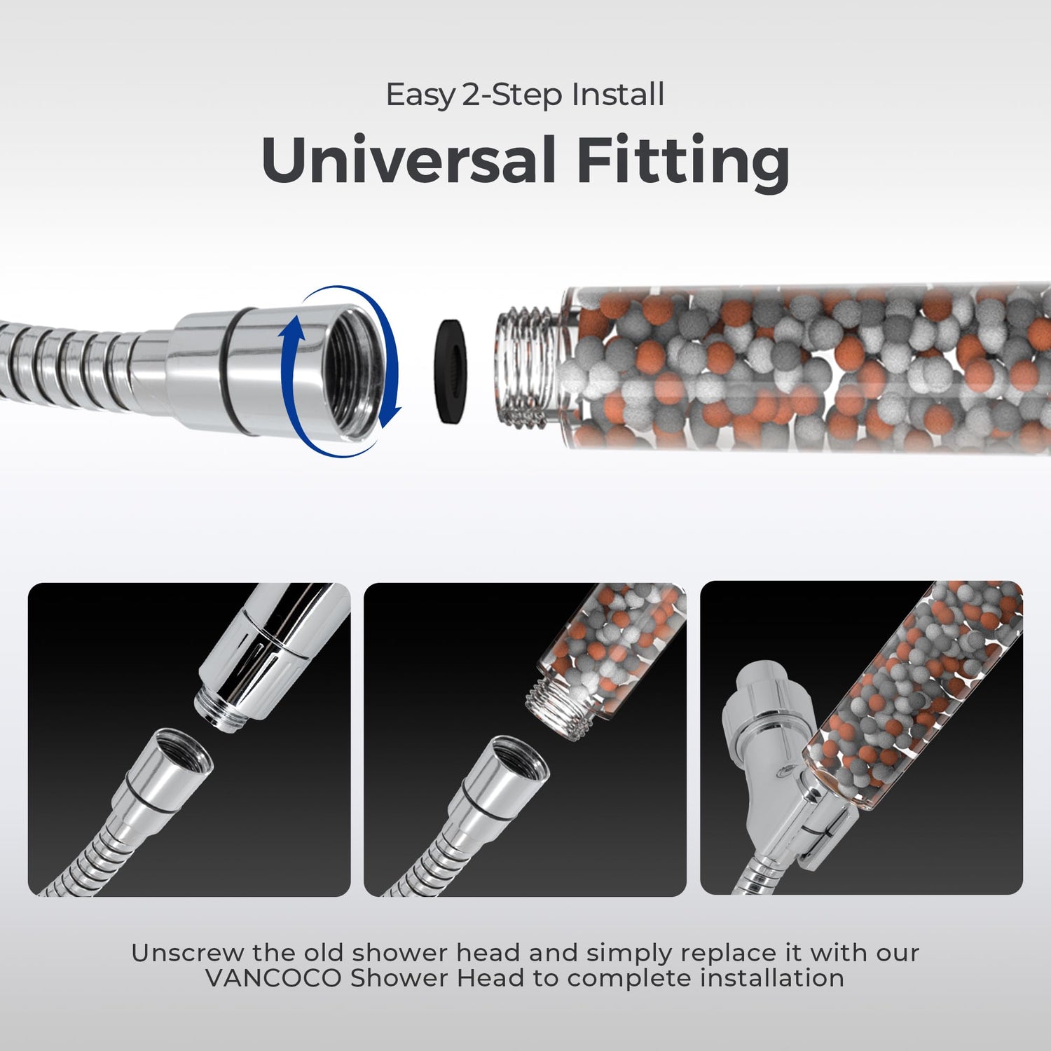 - Quick Installation & 2M Shower Hose: No plumber required, just unscrew the old shower head and simply twist our VANCOCO‘s filter shower head onto VANCOCO’s shower hose.If you have any questions please contact us in time!