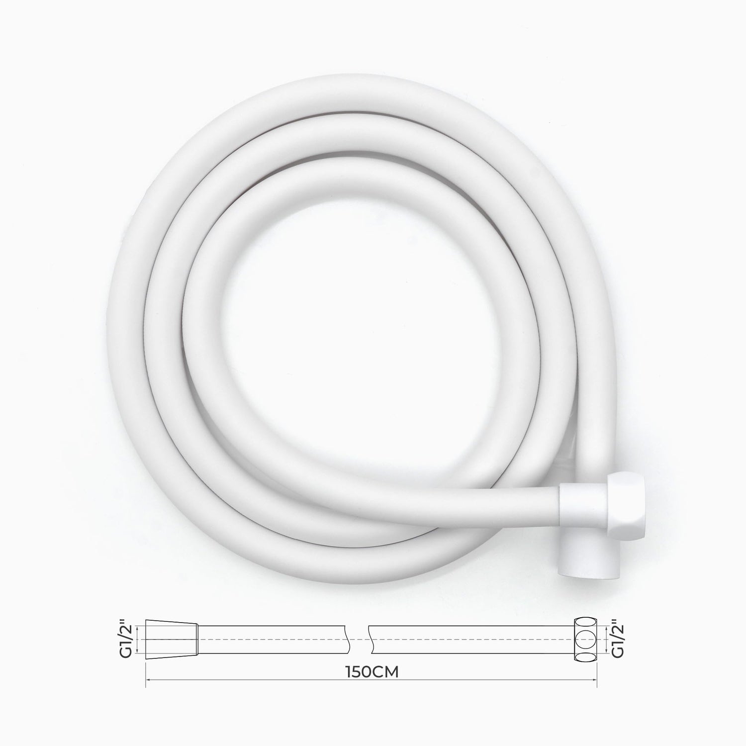 Vancoco PVC Smooth Shower Hose Flexible Anti-Twist 1.5M / 59 Inch with Brass Connections Universal Shower Head Hose Leak Proof White