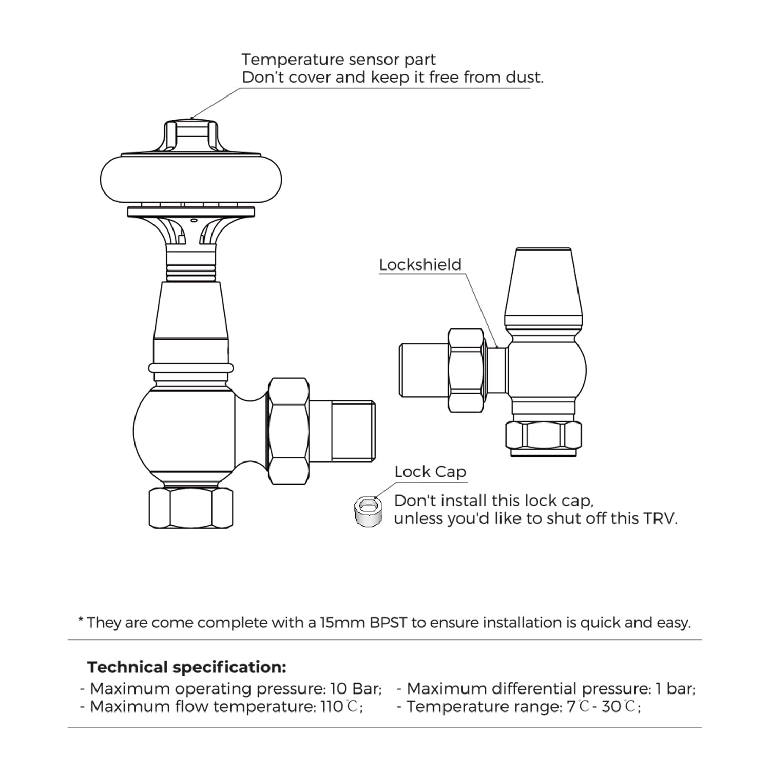 - Installation - As a general recommendation, we suggest install the TRV on the inlet pipe of radiators or towel rails, and fitting Lockshield on the return pipe, to maintain the precise temperature control