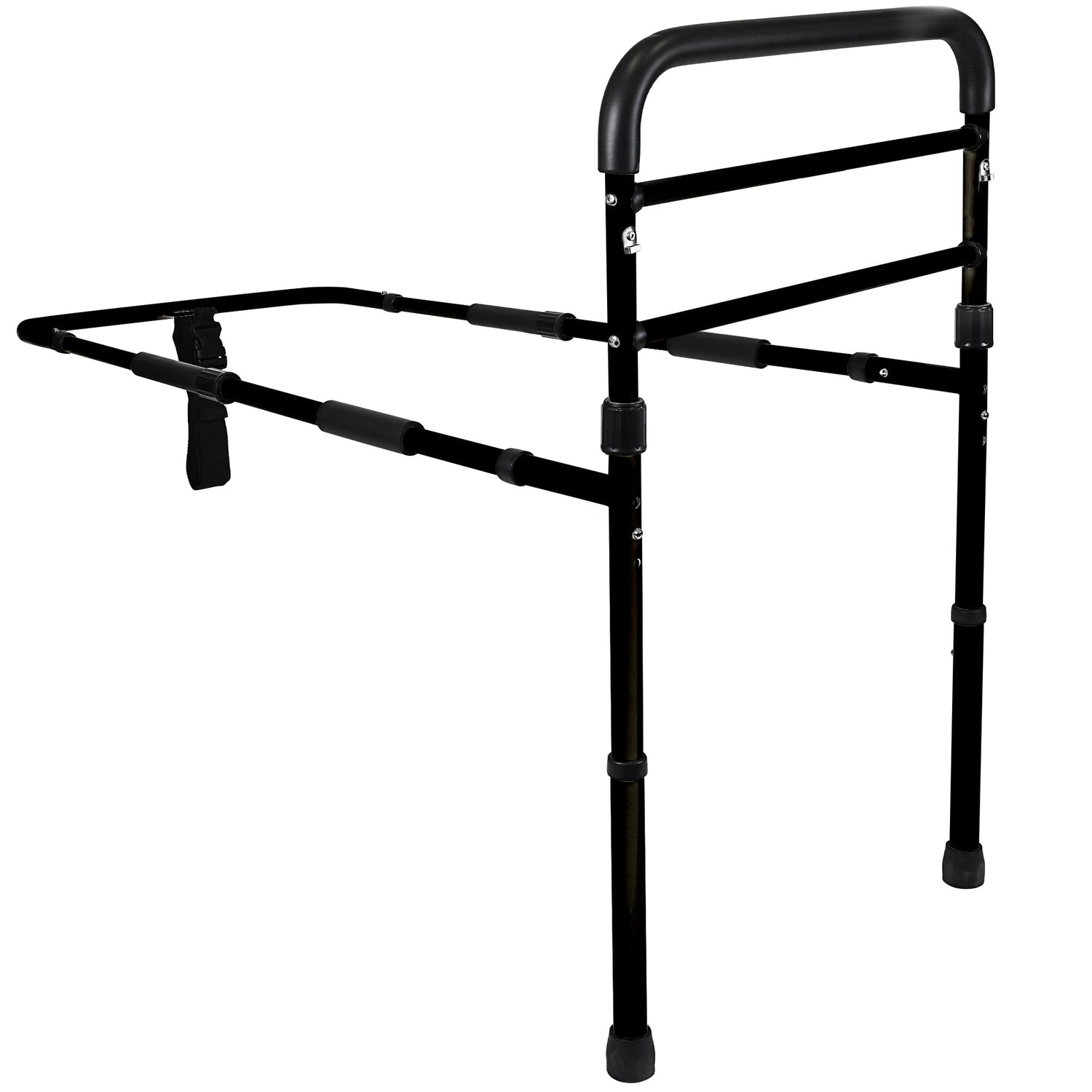 - SLIP-RESISTANT PADS - Slip-resistant handle with foam padding, horizontal stabilizer bars, and floor-standing legs work to increase stability for users. It will not work on low bed/platform bed with height clearance less than 13" from floor to frame.