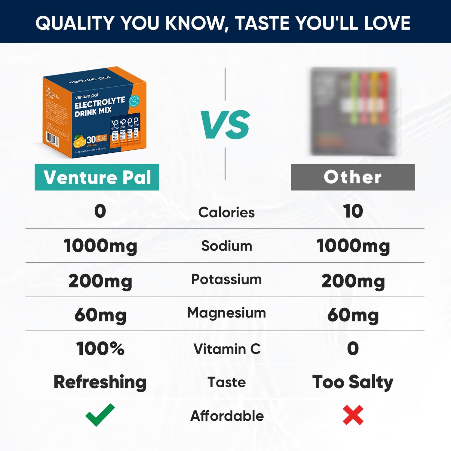 - OPTIMIZED FORMULA DESIGNED FOR YOU: Venture Pal Electrolyte Powder Packets offer a zero-calorie, sugar-free solution packed with essential electrolytes like sodium, potassium, and magnesium to keep you hydrated and performing at your best during workouts or daily activities
