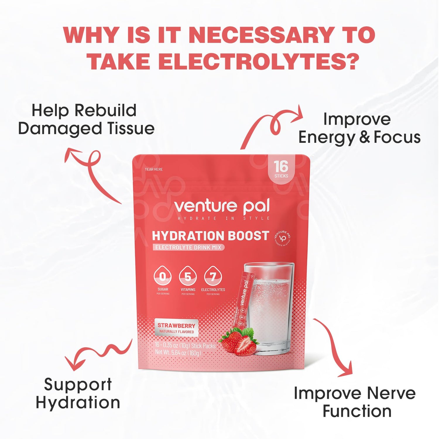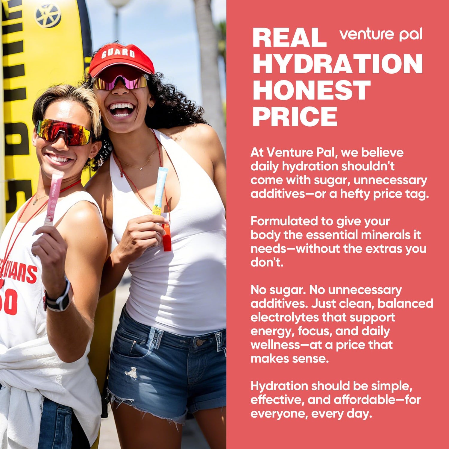 Venture Pal Sugar Free Electrolyte Powder Packets - Liquid Daily IV Drink Mix for Rapid Hydration & Party Recovery | 5 Vitamins & 7 Electrolytes| Keto Friendly | Non-GMO | Certified Vegan | 16 Sticks