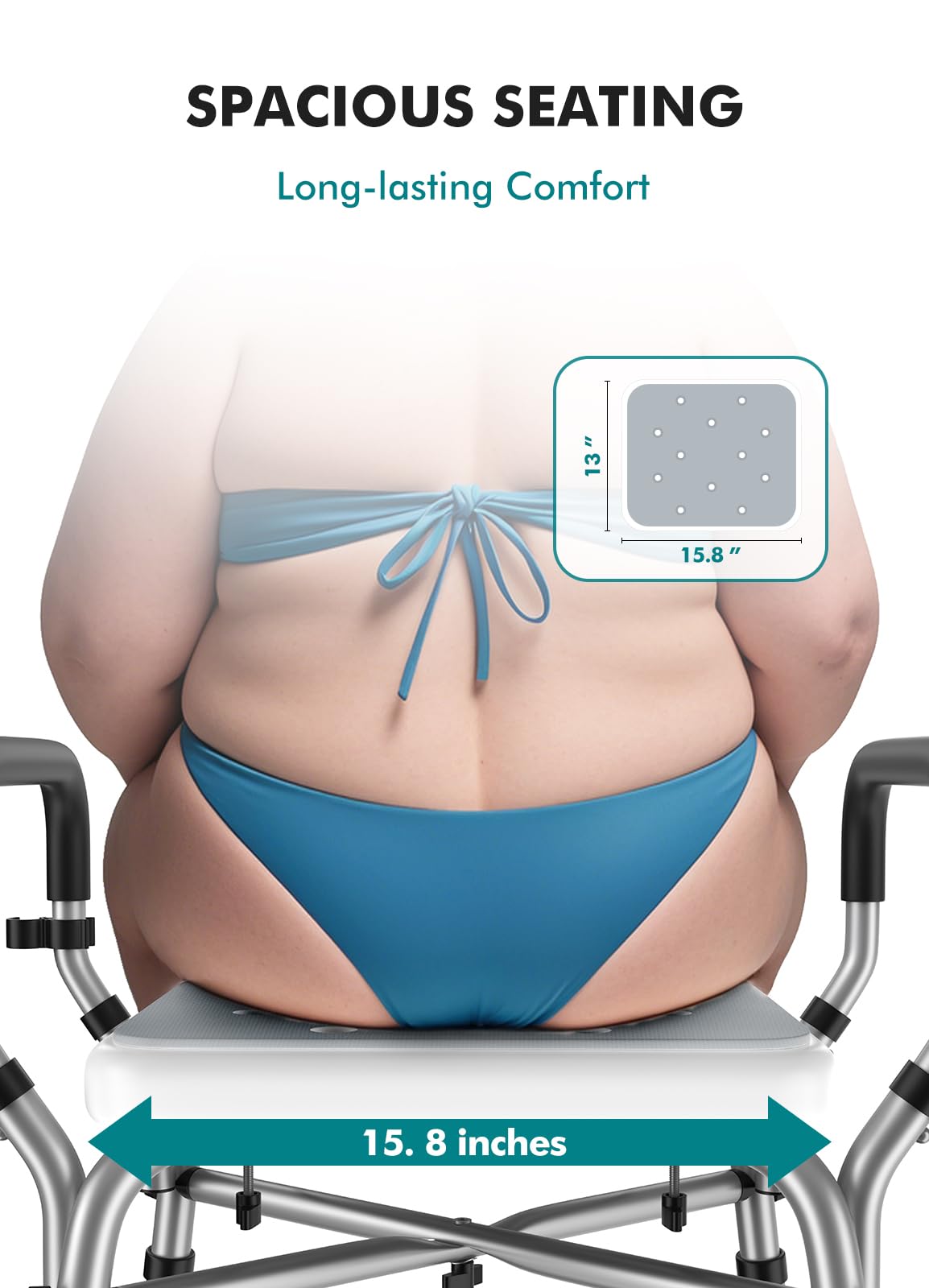 - HEAVY DUTY SHOWER CHAIR: Made of high-quality aluminum with reinforced frame, the handicap shower chair with crossbar supports up to 550 lbs, sturdy but light to move easily, enhanced stability & balance to add extra support for large adults, elderly and disabled