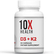 Vitamin D3 K2, 10X Health Vitamin D3 K2 - Loaded with 125 mcg Vitamin D and 90 mcg Vitamin K (Menaquinone 7) - D3 and K2 Supplements That Support Bone Health, Heart and Teeth - 60 Capsules