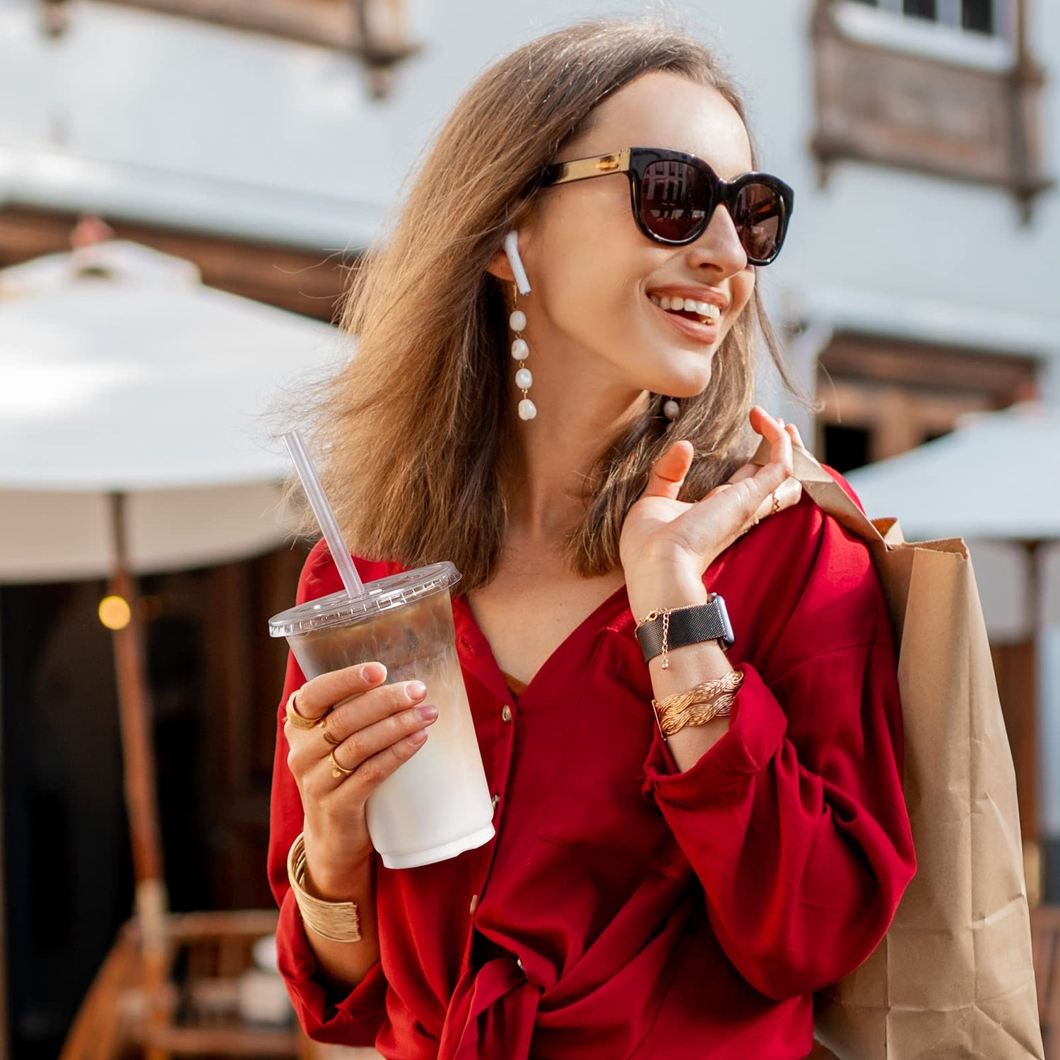 - CLEAR CUPS FOR VARIOUS USES: The clarity of these disposable plastic cups presents an upscale appearance while also providing great visibility of things inside. Perfect for all kinds of drinks like iced coffee, iced tea, juice, lemonade, cocktail, smoothie, milkshake, bubble tea, water, soda and sangria.