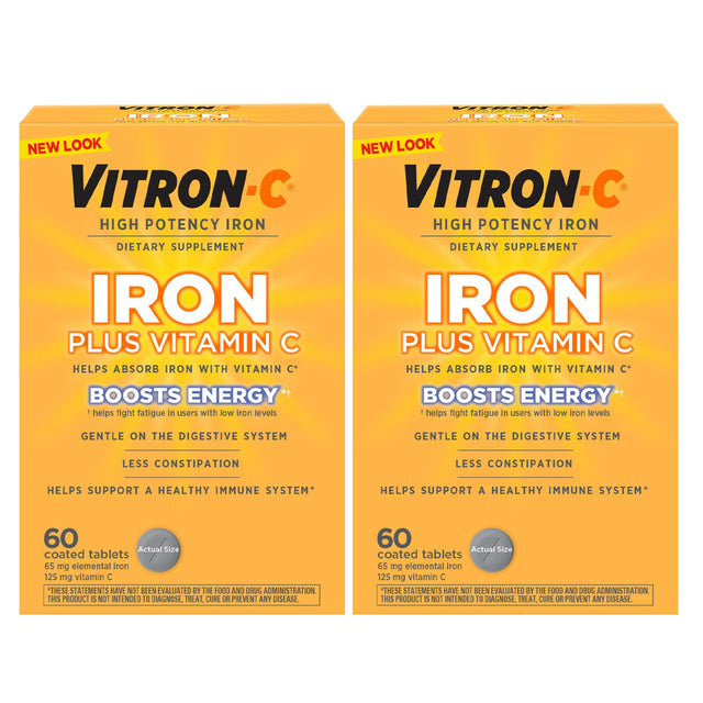 - Contains 2 packs of Vitron-C High Potency Iron Supplement Plus Vitamin C, 60 tablets in each pack