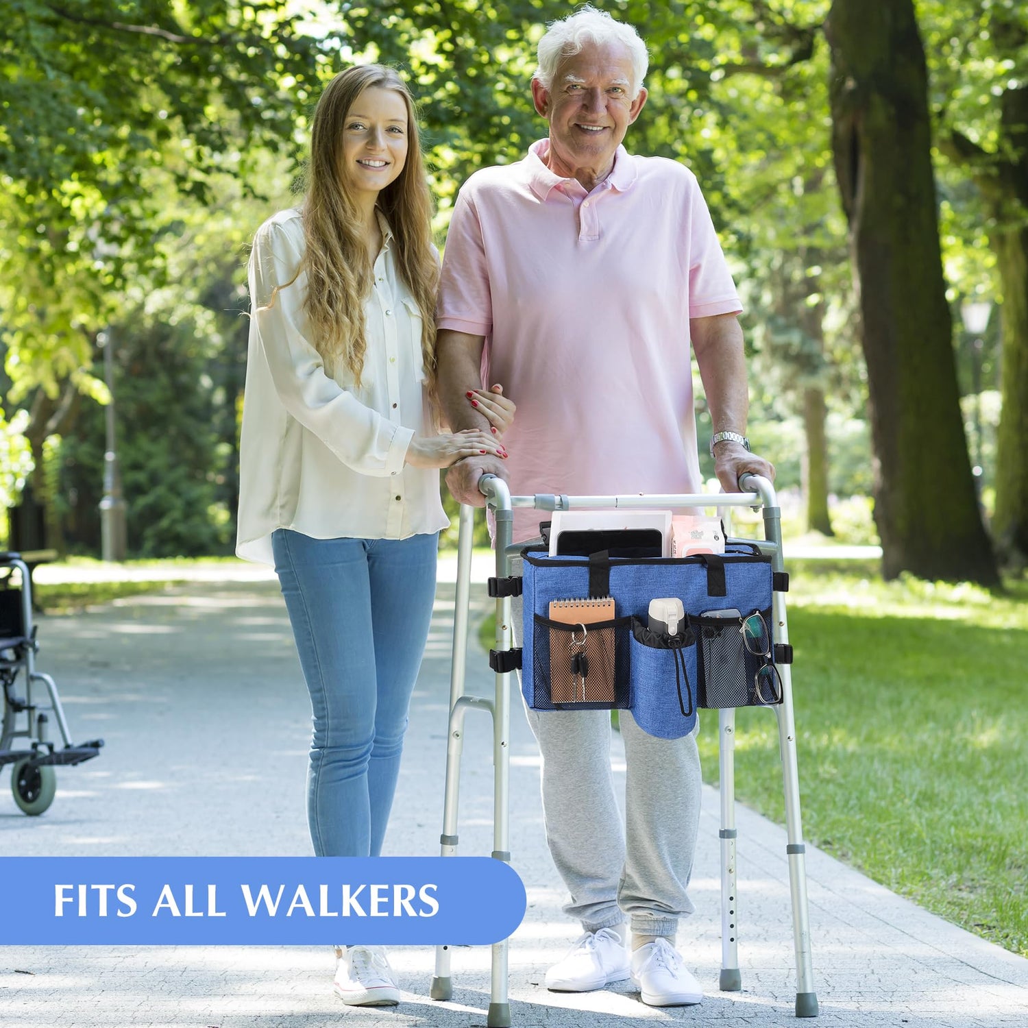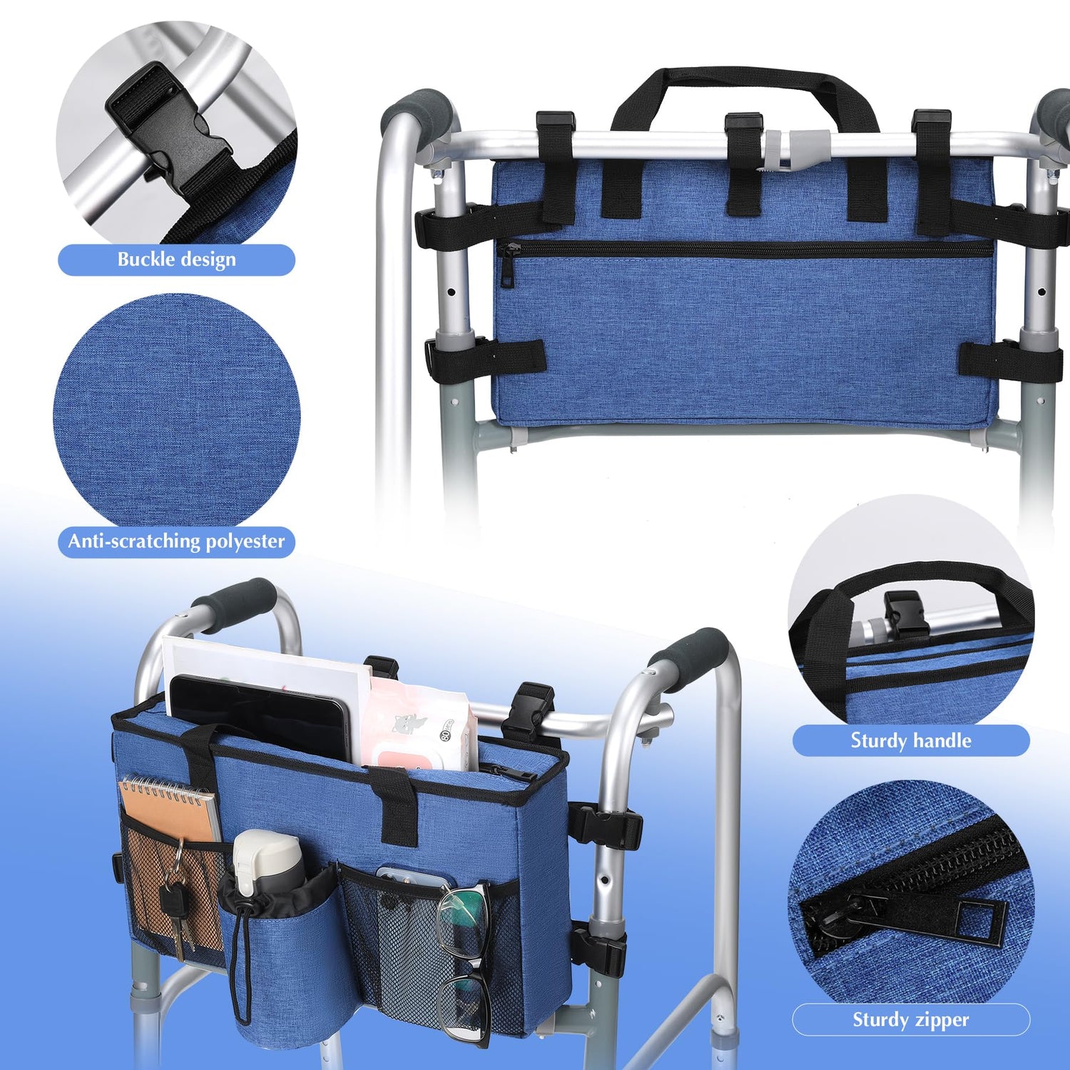 Walker Accessories for Folding Walker with Cup Holder,Pocket, Organizer Carry Storage Pouch Bag Buckle (Blue)