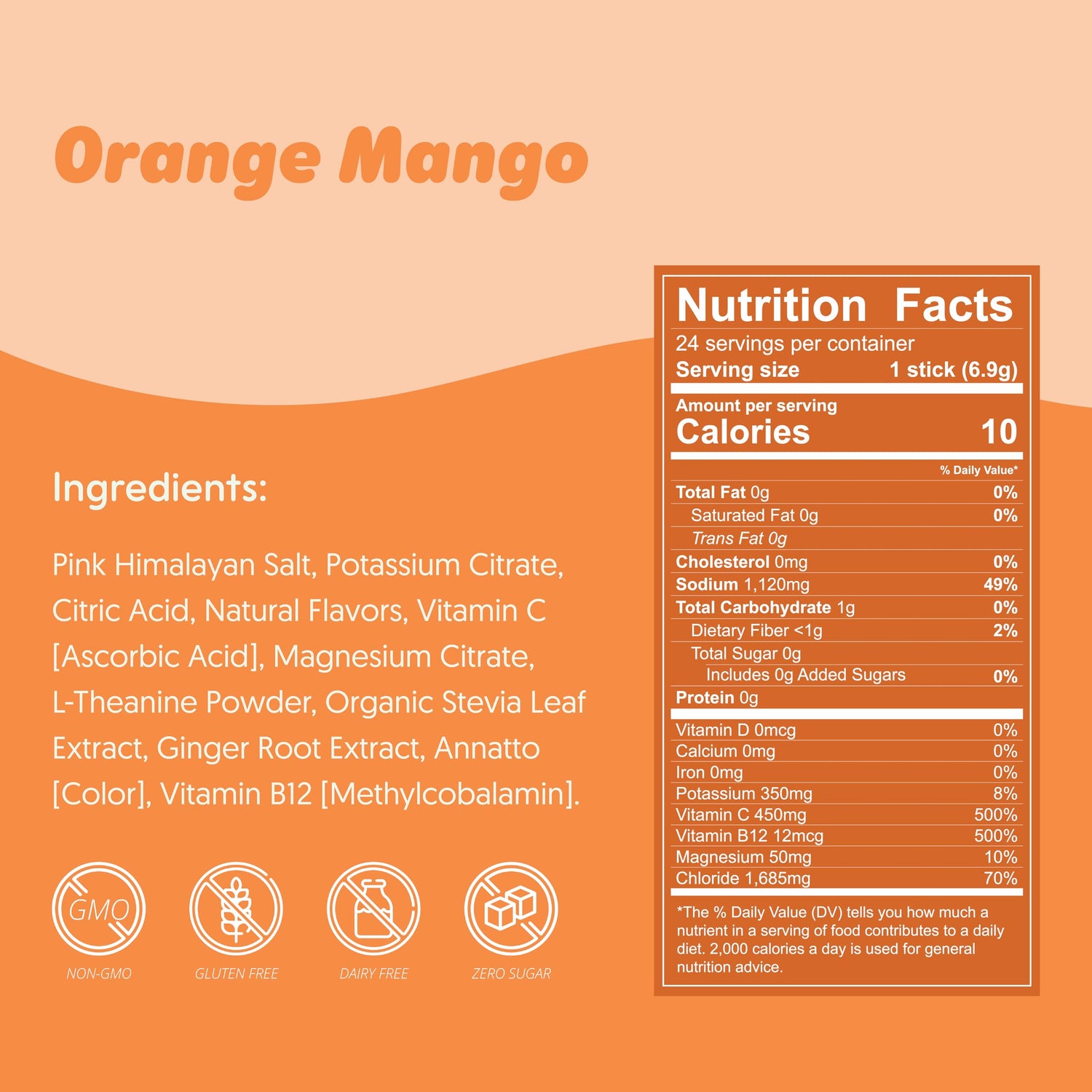 Waterboy Weekend Recovery | 3,200mg Electrolyte Powder Packets | Ginger + L-Theanine + Vitamins | No Sugar, All Natural, Gluten Free | 24 Drink Stick Mixes (Orange Mango)