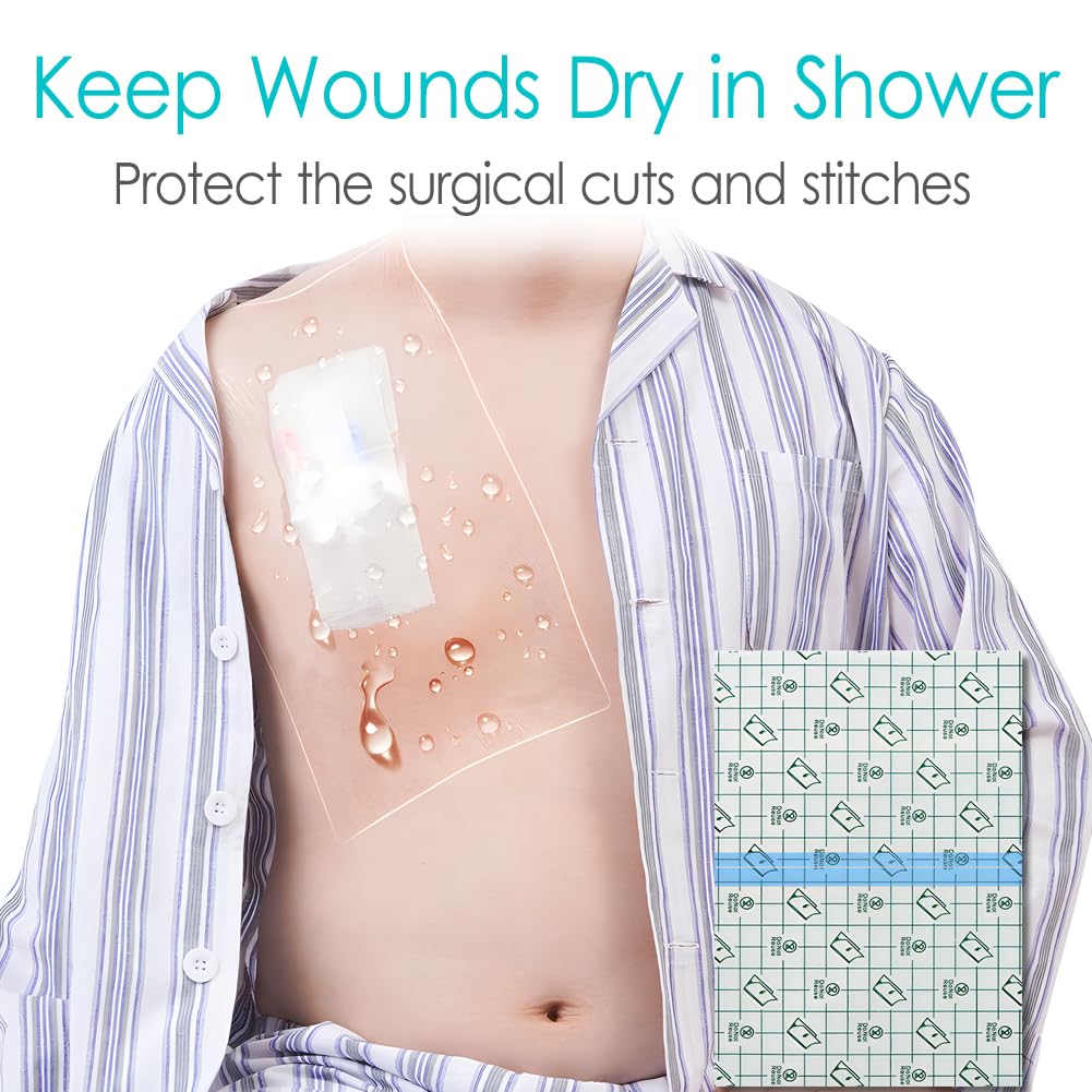 - 【Large Coverage & Adhere Well】These moisture barrier shower cover shields stick well and are big enough to cover your pd catheter and large areas in a shower, the size is the same to what nurses give you at hospital. This chest catheter port shower cover gives you great peace of mind to shower and not worry about getting the site wet, it also saves the going crazy trying to contrive waterproof coverage of catheters, picc lines, incisions and other "MUST NOT GET WET" medical locations.