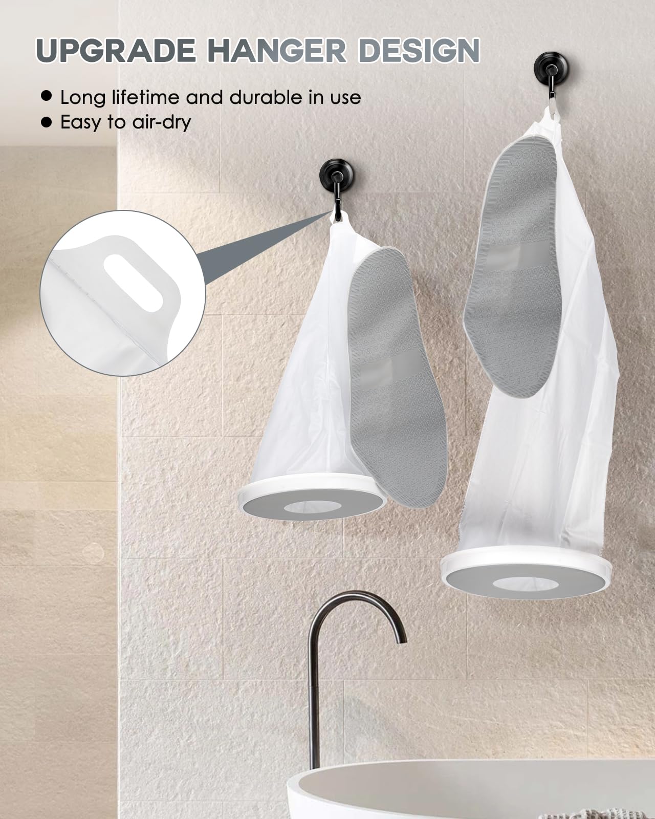 - 🛀HANGER DESIGN & REUSABLE DURABLE: Upgraded hanger design, only need to hang it to air-dry after each use(avoid exposure). Easy to store and reusable for long lifetime. The soft medical-grade material and stretchy silicone opening makes the cast bag for shower leg durable in use.