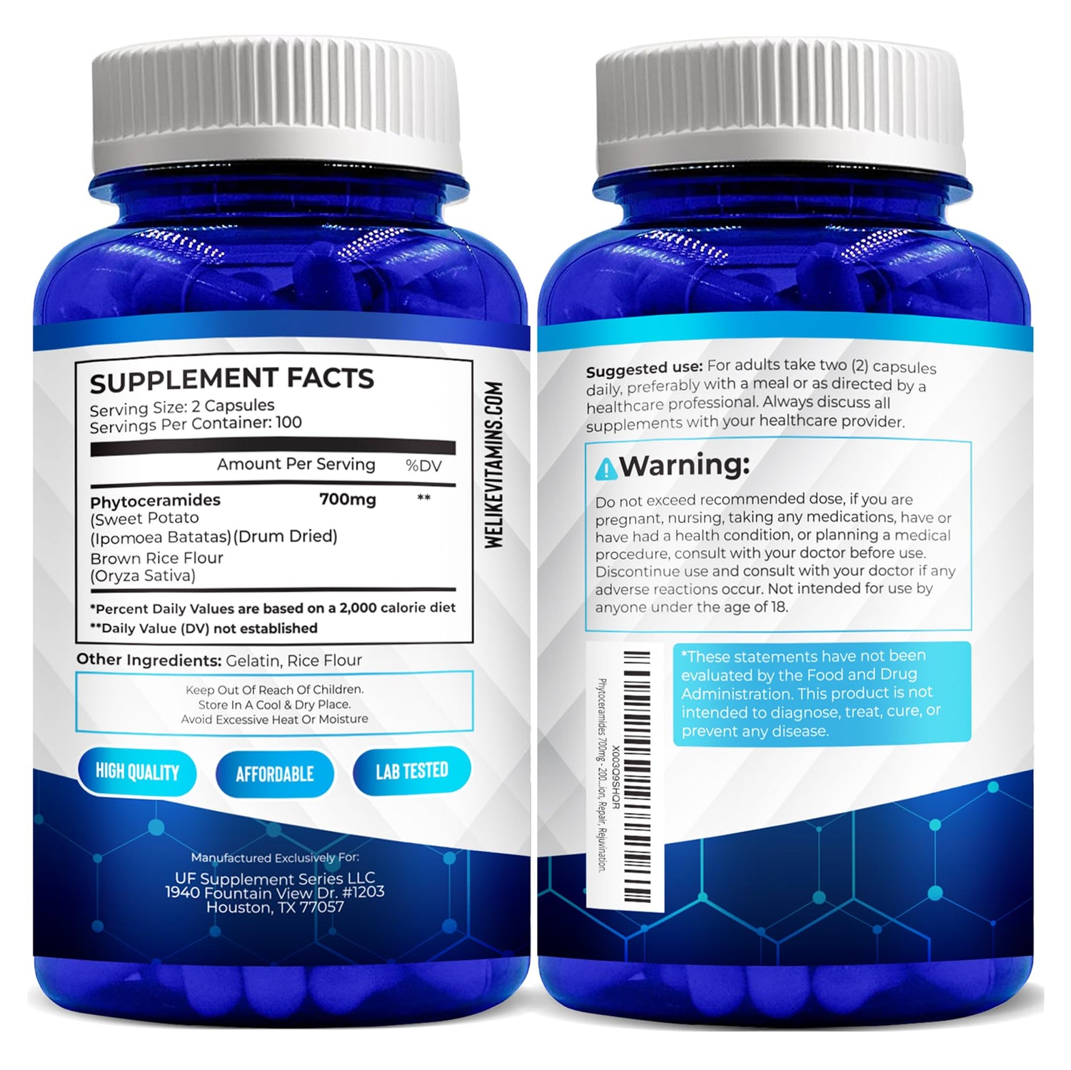 We Like Vitamins Phytoceramides 700mg - 200 Capsules All Natural Wheat Free and Plant Based - Phytoceramide Supplement - 700 mg per Serving - Skin Hydration, Repair, Rejuvination