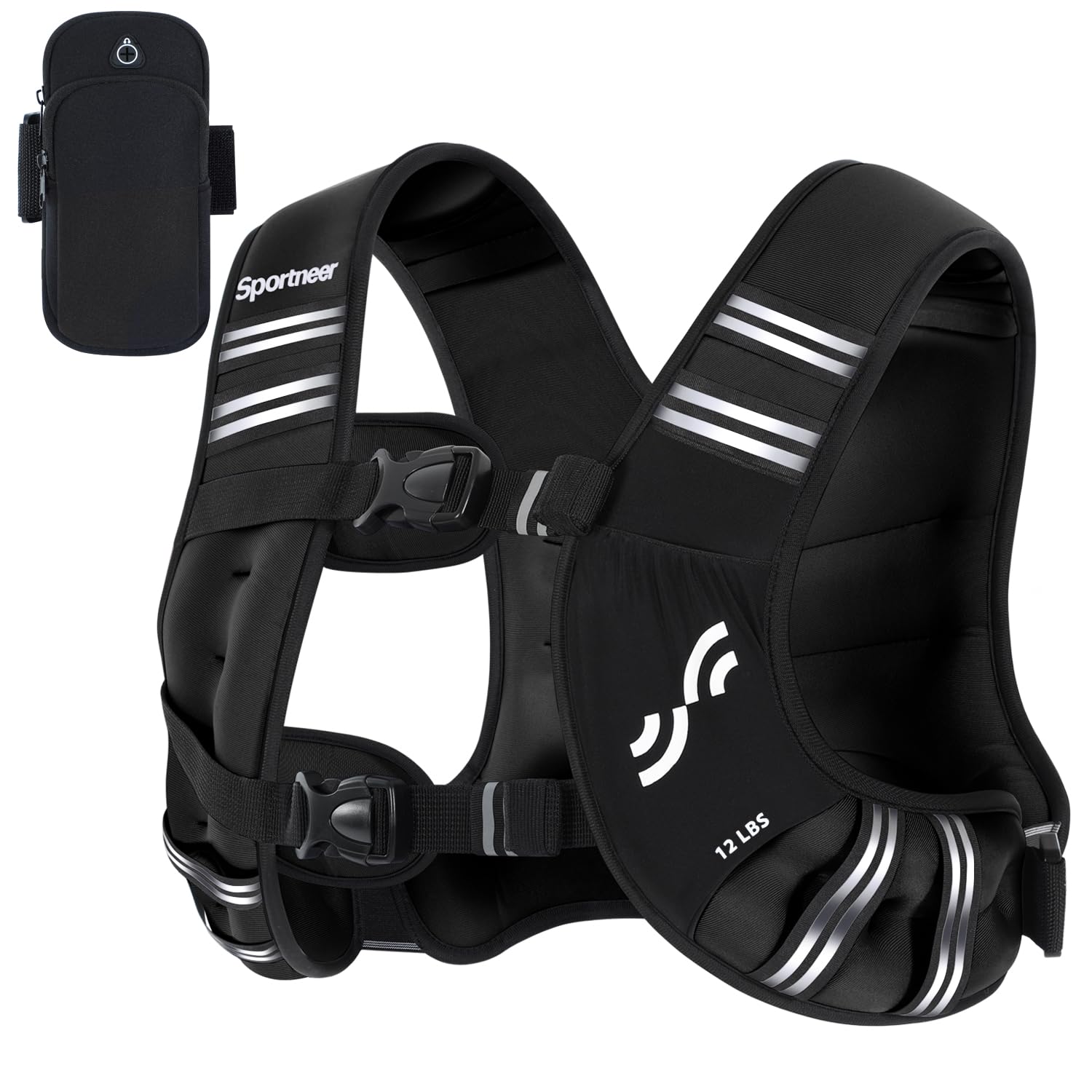 Weighted Vest for Men and Women: Sportneer 12lbs Weight Vest with Reflective Stripe Running Vest with Large Pocket for Cardio Workout Strength Training Fitness Muscle Building Weight Loss Weightlifting