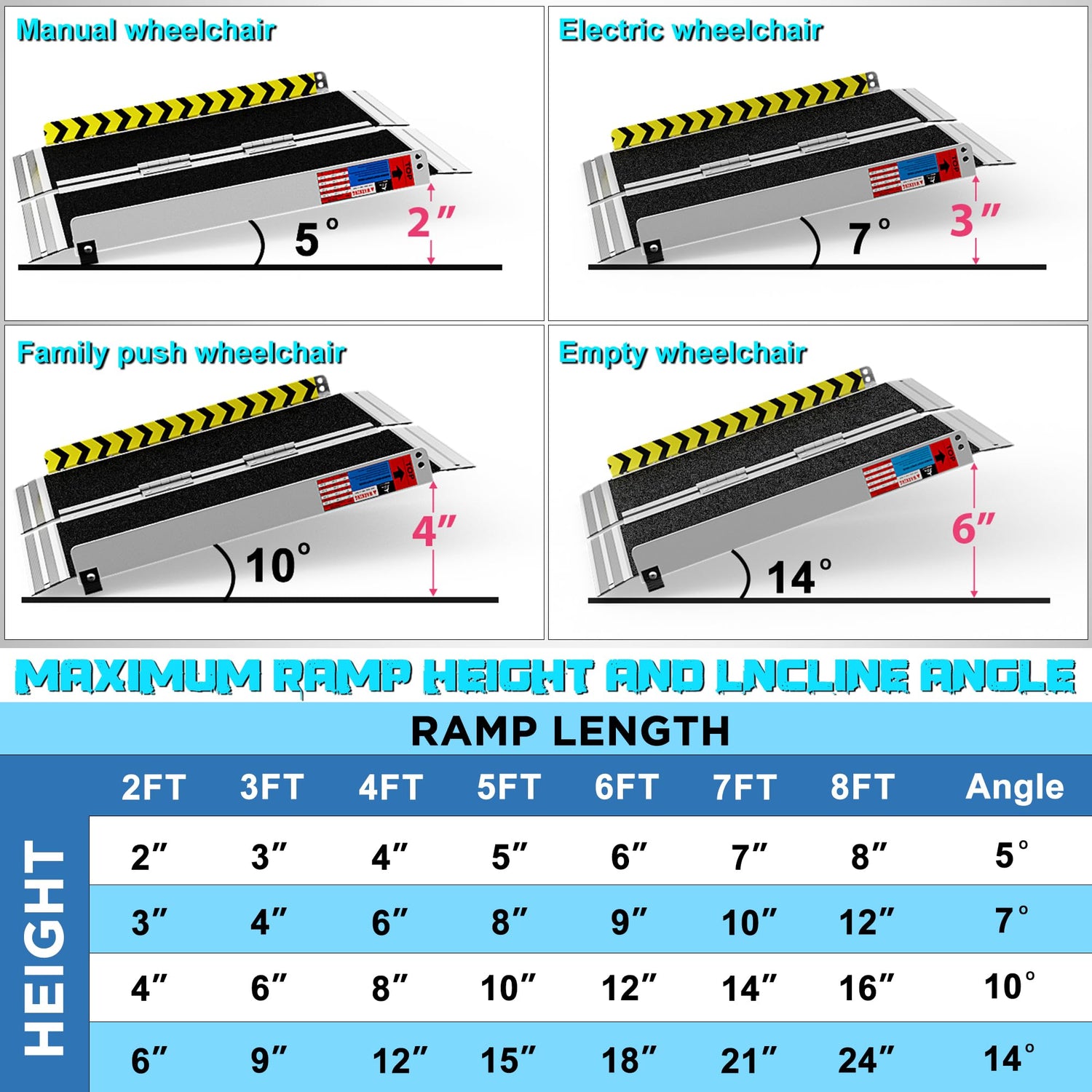 - ⚠️2FT Wheelchair Ramps are available for 2 inch-6 inch step heights only.