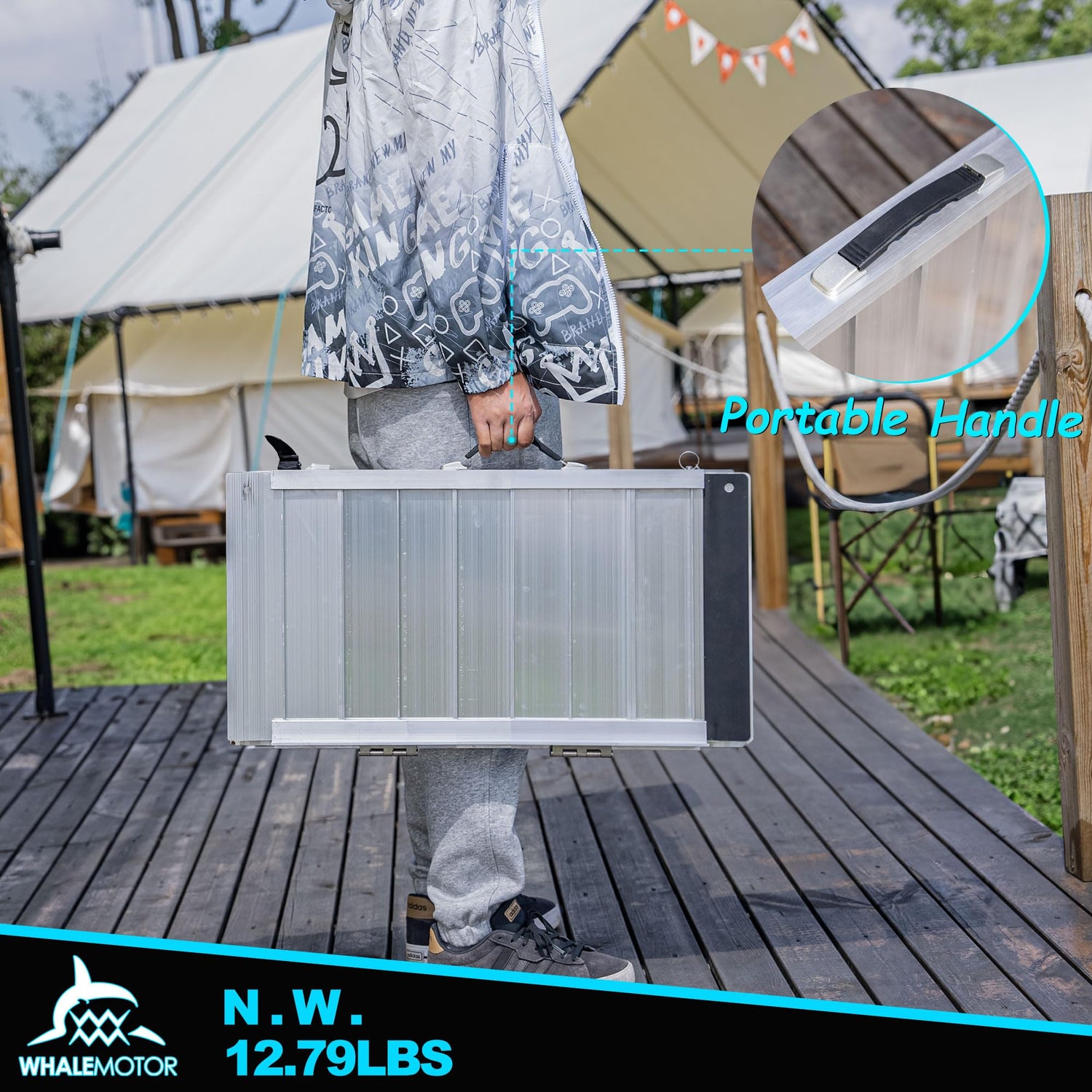 WHALEMOTOR Portable Wheelchair Ramp 2FT, Anti-Slip Aluminum Folding Portable Ramp, Wheelchair Ramps for Home, Weight Capacity Up to 600 LBS, with Transition Plates Above and Below