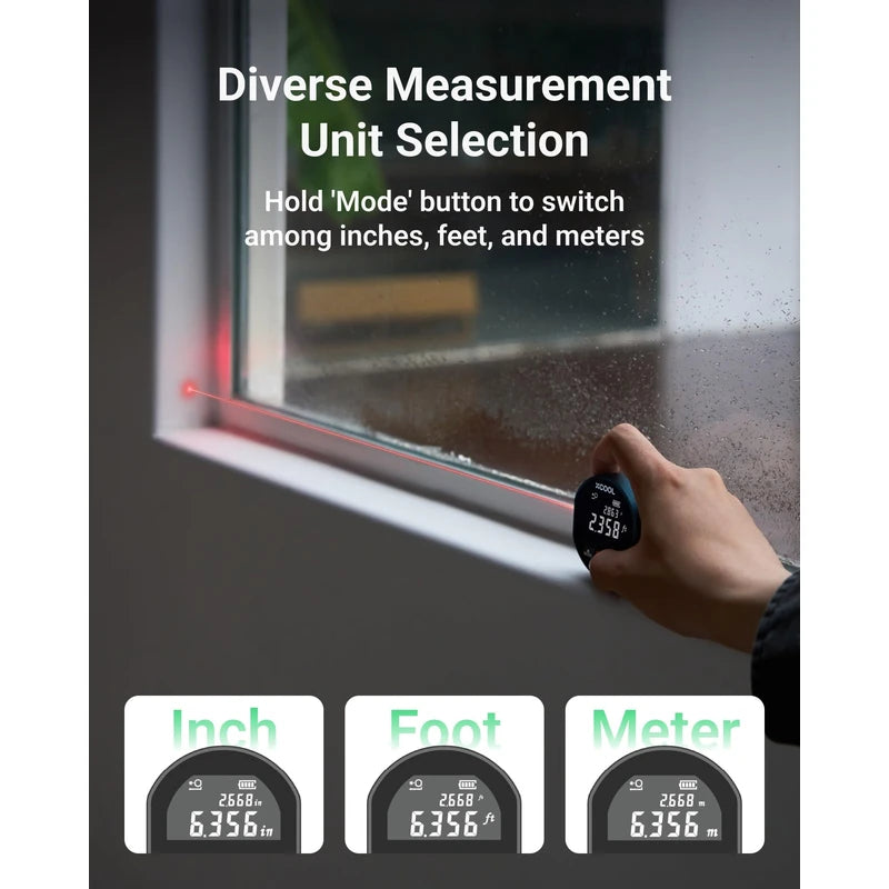 - Diverse Measurement Unit Options: Choose your preferred unit of measurement by cycling through options - meters, feet, and inches, catering to a wide variety of requirements, from construction to home improvement projects.