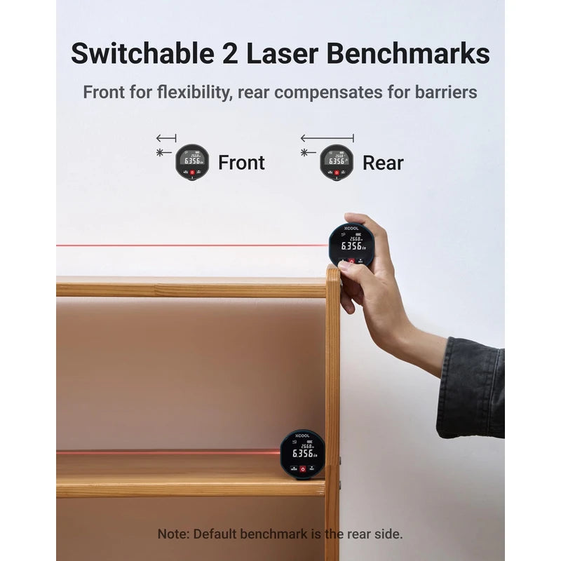 - Switchable Dual Laser Benchmarking: Choose from front or rear benchmarks with our laser measure, aiding in precise measurements in every use. Please note that the rear benchmark is the default. Please note, this product features a Class II laser type 630-670 nm, with power <1 mW. For safety, avoid staring at the laser for extended periods.