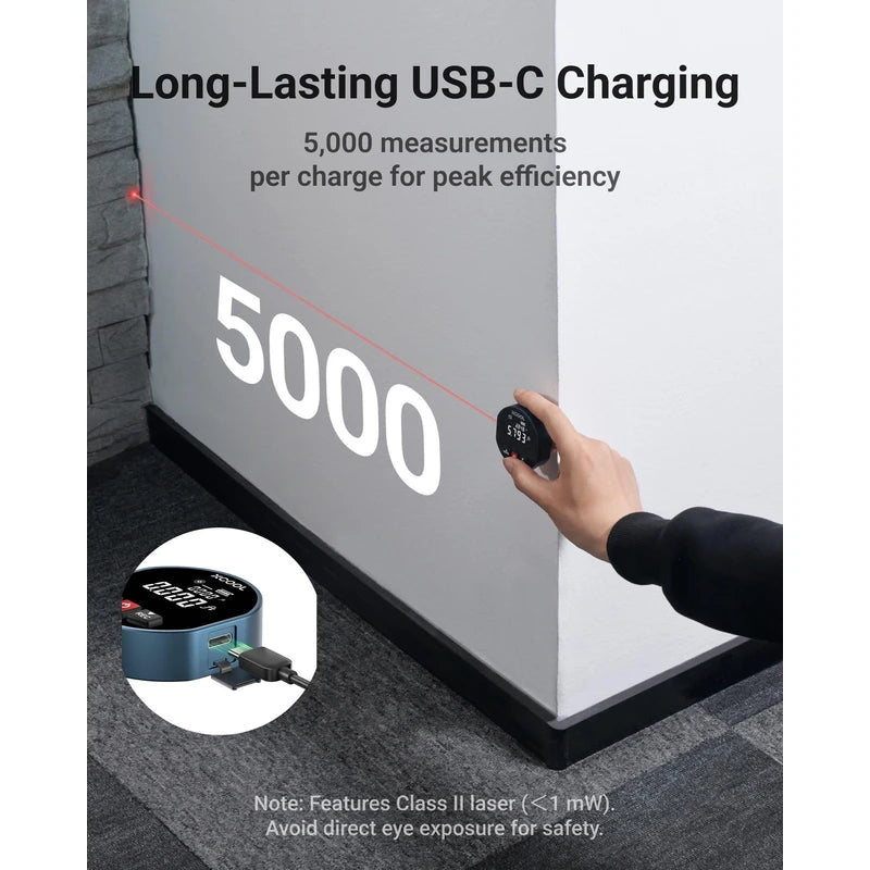 - USB-C Charging: Equipped with a 240mAh battery, this digital measuring tape can provide up to 5,000 measurements on a single charge, increasing efficiency for your measuring needs.