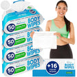 - Feel & Texture: Experience the softness and nourishing benefits of our embossed body wash cloths, made with sustainable fibers and enriched with Aloe Vera and Vitamin E. Our extra moist, rinse-free bath wipes with an advanced resealable lid stay fresh and won't dry out . Perfect for whole-body cleaning for elder care, bedridden patients, adults, toddlers, and babies, these gentle body wash wipes maintain skin health and vitality. They are microwavable for easy warming when used for babies.